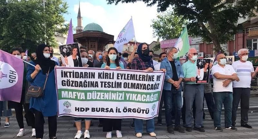 “İktidarın kirli eylemlerine ve gözdağına teslim olmayacağız-Mafya düzenini yıkacağız / HDP İl örgütü” pankartının açıldığı eylemde basın açıklamasını HDP Bursa İl Eşbaşkanı Ceylan Erdoğan okudu. Katliamın lanetlendiği konuşmada, iktidarın izlediği politikalar teşhir edildi. Açıklamada şunlar söylendi: