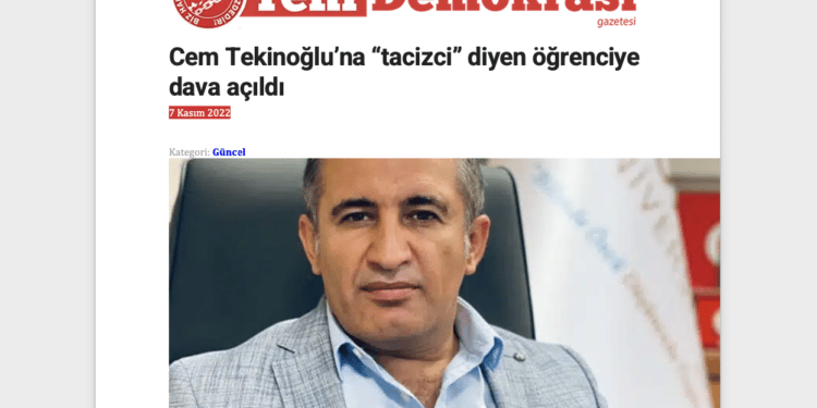 "Cem Tekinoğlu’na 'tacizci' diyen öğrenciye dava açıldı" haberini şikayet etti
