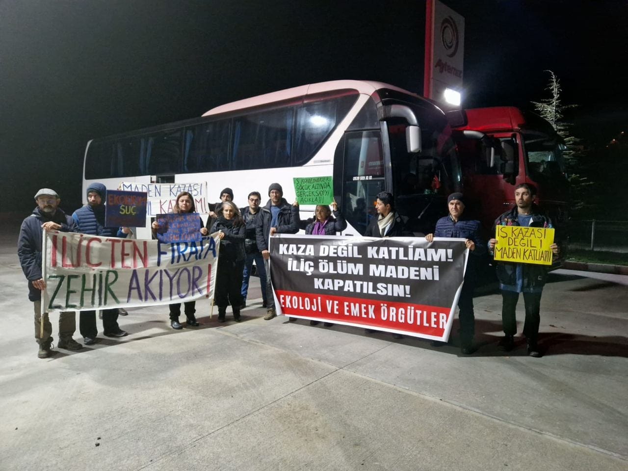 İliç’te yaşanan katliamla ilgili Erzincan’a gitmek isteyen, aralarında MÇD’nin de bulunduğu çevre örgütleri kente alınmadı. İstanbul’da buluşarak İliç’e doğru hareket eden heyet katliamın boyutunu yerinde incelemeyi ve ailelerle, işçilerle dayanışmayı hedefliyordu. Heyet güzergâh boyunca polis ve jandarmanın GBT tacizlerine maruz kaldı. Yarım saatlik periyodlarla yapılan GBT’ler Sivas il girişinde yerini fiili engellemeye bıraktı. TOMA ve çevik kuvvet polisi eşliğinde önü kesilen otobüs, Sivas Valiliği’nin yasağı gerekçesiyle Sivas’a sokulmadı. İliç katliamıyla ilgili “eylem yapma potansiyeli” oldukları değerlendirmesiyle engellenen heyet yasağa karşı bekleyişini sürdürürdü.