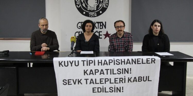 Çağdaş Hukukçular Derneği (ÇHD) İstanbul Şubesi, yüksek güvenlikli hapishanelerin kapatılması ve sevk için hapishanelerde süren açlık grevlerine ilişkin basın toplantısı düzenledi. “Kuyu Tipi Hapishaneler Kapatılsın! Sevk Talepleri Kabul Edilsin” pankartı açıldı.