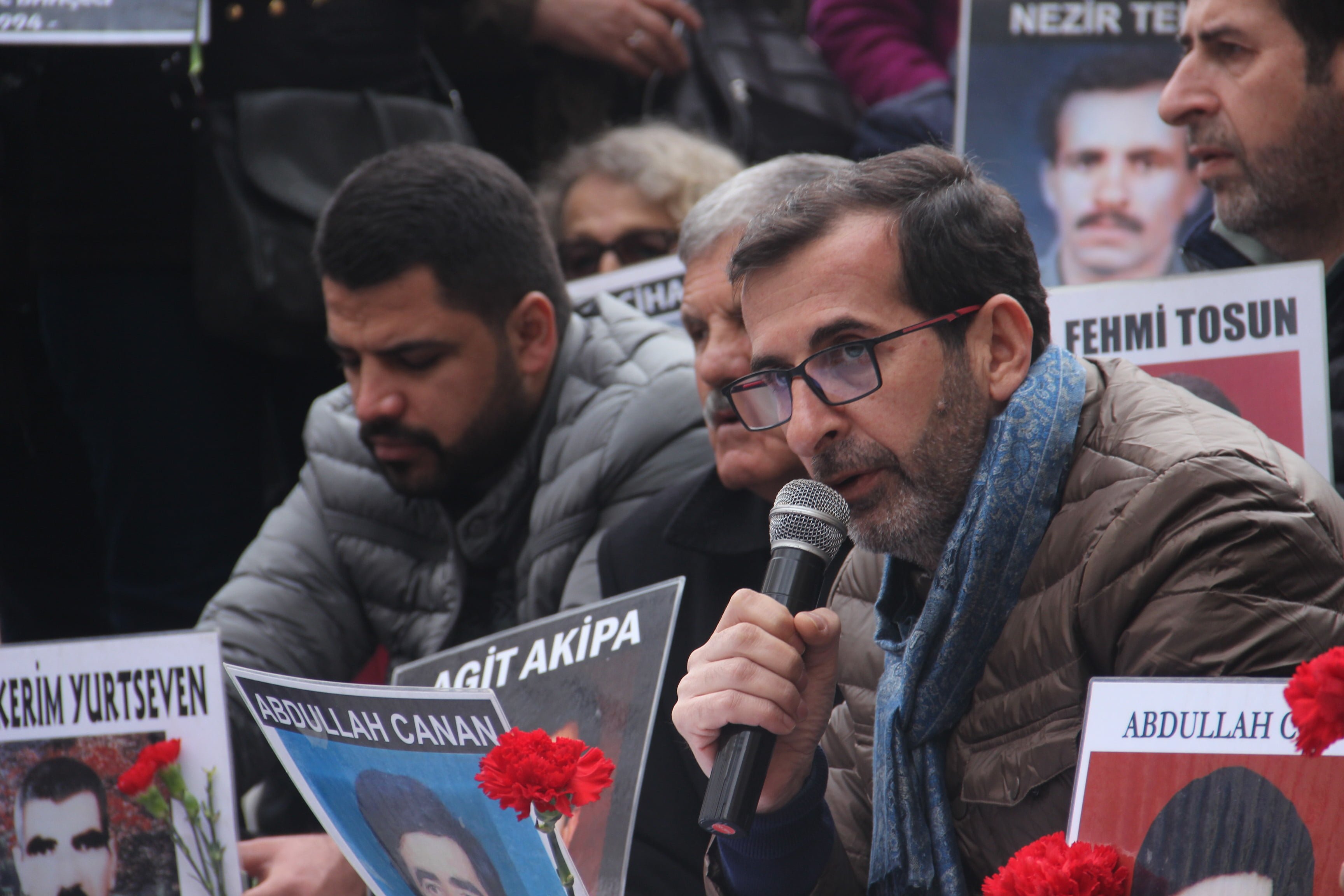 Galatasaray Meydanı’nda yapılan eylemde ilk sözü Abdullah Canan’ın oğlu Tayyip Canan aldı. Babasının katledilişini ve katillerinin korunmasını anlatan Canan, davayı AİHM’e taşımalarını engellemek ve davadan vazgeçmesi için kendisini arayan bakanlık müşavirinin para teklif ettiğini söyledi.