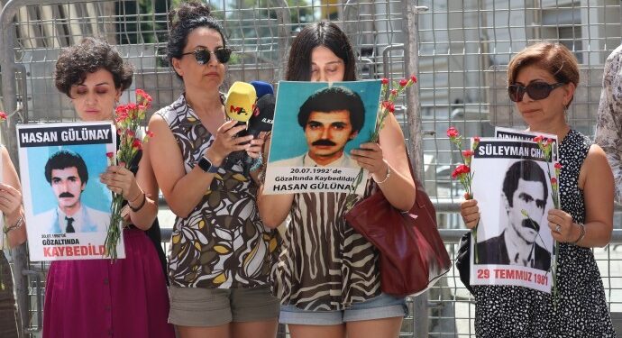 Hasan Gülünay’ın kızı Deniz Gülünay’ın eyleme gönderdiği mektubu İHD İstanbul Şube Eşbaşkanı Jiyan Tosun okudu. Deniz Gülünay’ın mektup şöyle: “Babam Hasan Gülünay 20 Temmuz 1992’de İstanbul’da gözaltına alındı. O günden beri devlet bize onun nerede olduğunu söylemiyor. Biz onun akıbetini bilmiyoruz; ama biliyoruz ki o dönemin iktidarı, emniyet güçleri, kontrgerilla yapılanmaları, MİT onun kaybedilmesinden sorumludur. Babam bir faili meçhul değil. O, devletin gözaltında kaybetme politikasının bir sonucudur. Onun hikayesi kişisel bir acı değil; bu ülkede muhalifleri susturmak, devrimcileri yok etmek, toplumun hafızasını parçalamak için yürütülen sistematik bir devlet politikasının parçasıdır. Babamın akıbetini sorduğumuzda bize cevap vermeyenler, aslında onun devrimci kimliğine cevap veriyor. Çünkü onu kaybedenler, onu bir kişiden ibaret görmüyordu. Gözaltında kaybetmelerde fail sadece işkenceci polis ya da asker değildir. Asıl fail devlettir. Emri verenler, organize edenler, koruyanlar ve cezasızlık düzenini sürdürenler. Onları kaybedenler, bizi de yok saymak istiyor. Sesimizi kısmak, hafızamızı silmek, teslim olmamızı sağlamak istiyor. Ama bilsinler, biz onları unutmuyoruz. Kaybedilenleri de kaybedenleri de unutmuyoruz. Ve biliyoruz ki hesap sorulmadan adalet gelmeyecek. Kaybedenleri affetmiyoruz. Failler yargılanana kadar susmuyoruz.”