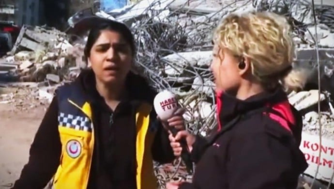 Habertürk muhabiri Gülçin Hacıevliyagil Ayçe, Adıyaman’da gelişmeleri canlı yayında aktardığı sırada sağlık emekçisi olduğunu belirten bir kadın, kadraja girerek hükümete tepkisini dile getirdi. O anlarda Habertürk’ün yayını kesmediği fark edilirken; sağlık çalışanının “Cumhurbaşkanı buraya gelsin. Gelsin bakalım yüzü yetiyor mu? Adıyaman’da 1 tane vekil, üst düzey yönetici yok” sözleri gündem oldu.