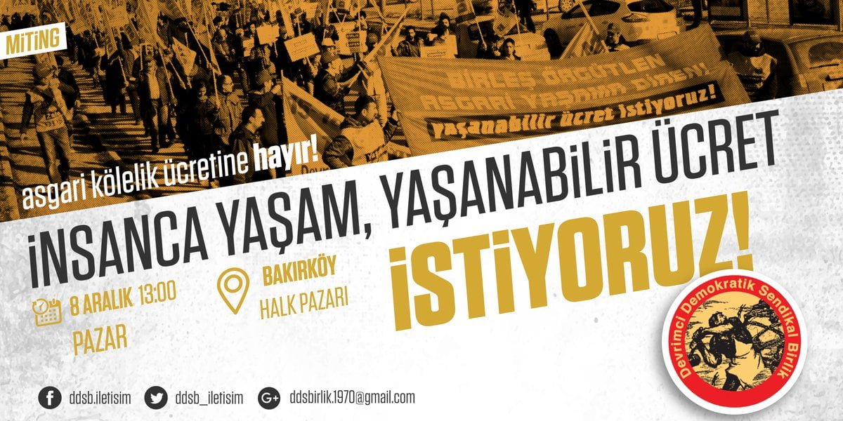 “Birleş, Örgütlen, Asgari Yaşama Diren!” şiarıyla mitingde yer alacaklarını belirten DDSB üyeleri, tüm işçileri, emekçileri DDSB kortejinde taleplerini haykırmaya çağırdı.