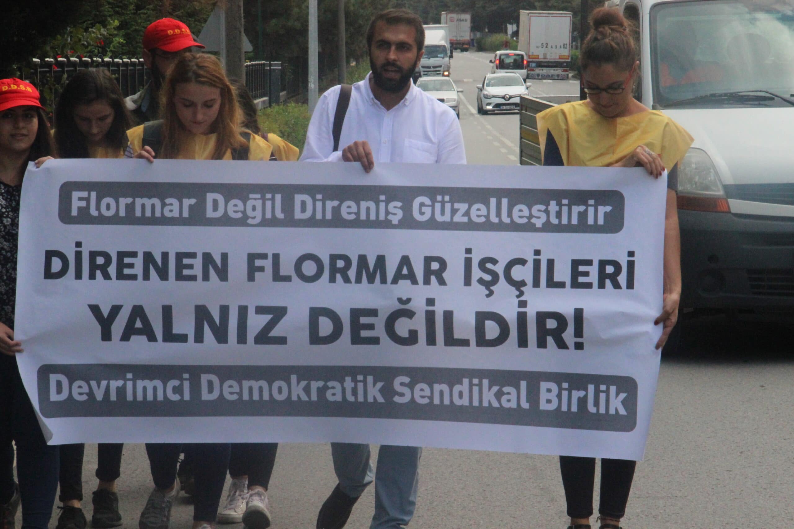 Yürüyüşün ardından bir konuşma gerçekleştiren DDSB temsilcisi, 121 gündür direnen Flormar işçilerinin direnişini selamladıklarını ve sahiplendiklerini ifade etti. Sendikalaşmanın ve sendikal mücadelenin kazanılmış bir hak olduğunu belirten DDSB temsilcisi, bedeller ödenerek kazanılmış bu haklarına sahip çıkacaklarını belirtti.