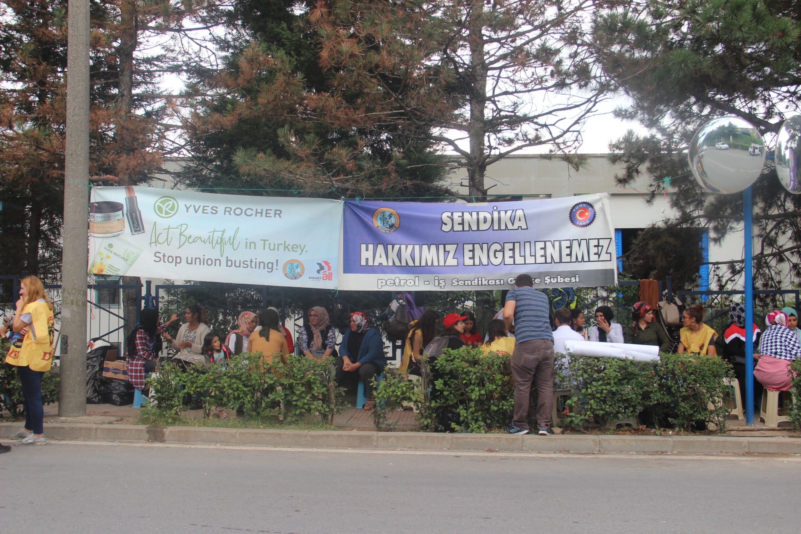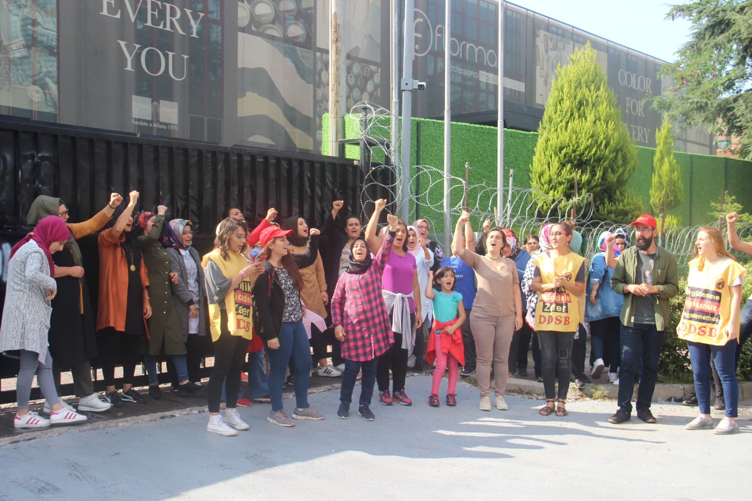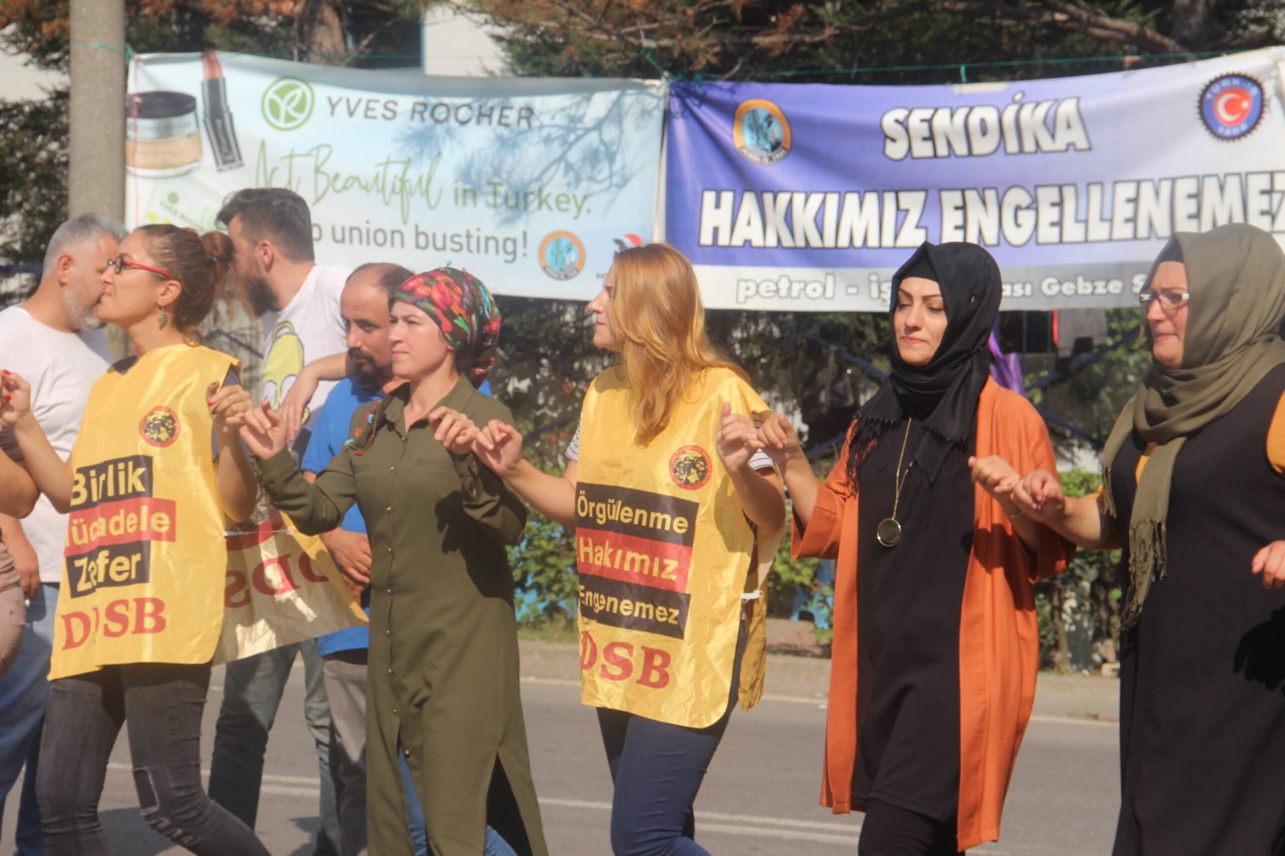 “Flormar Değil Direniş Güzelleştirir”, “Direnen Flormar İşçileri Yalnız Değildir” şiarlı pankartla direniş alanına yürüyen DDSB üyelerini, Flormar işçileri “Yaşasın sınıf dayanışması” sloganıyla karşıladı.