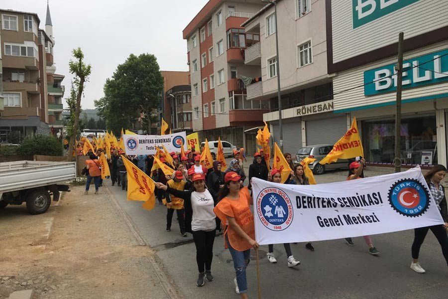 HABER MERKEZİ- Sabah 09.30’da Aydınlı’da bulunan DERİTEKS Tuzla Şubesi önünde toplanan yüzlerce işçi “Her yer Taksim her yer direniş”, “Yaşasın 1 Mayıs”, “1 Mayıs’ta alanlardayız”, “Yaşasın 1 Mayıs yaşasın sınıf dayanışması”, “İş ekmek özgürlük”, “Birlik mücadele zafer”, “Kurtuluş yok tek başına, ya hep beraber ya hiç birimiz”, “Zafer direnen emekçinin olacak” sloganlarıyla yürüyüş gerçekleştirdi.