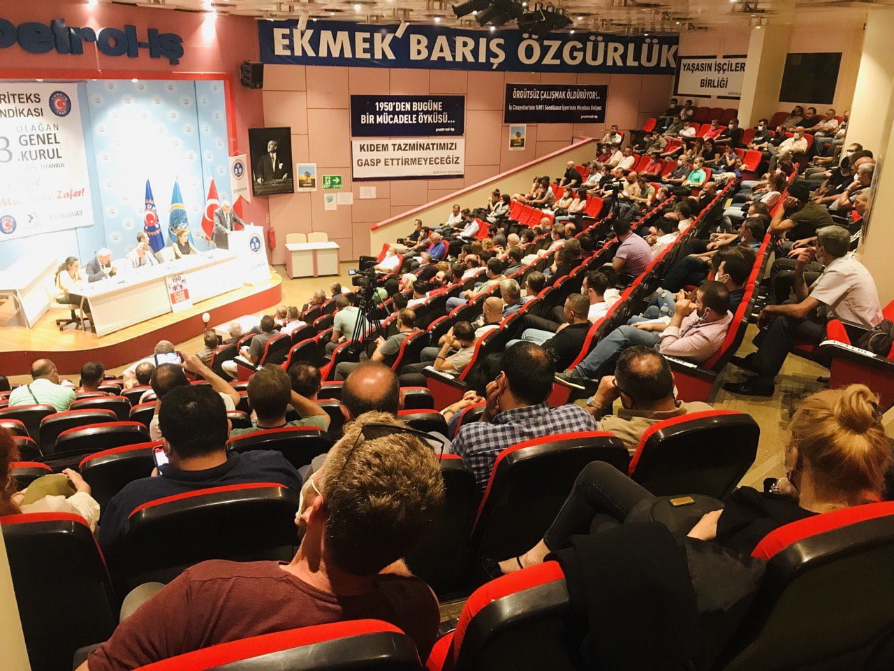 DERİTEKS’in genel kuruluna işçiler sloganlarla giriş yaptı. DERİTEKS Sendikası Genel Başkanı Musa Servi, açılış konuşmasında AKP iktidarını eleştirdi. Genel Başkan Musa Servi sendikalaşma oranının düşük olduğunu anımsatarak, “İşkolu barajı Türkiye’ye has bir durum olup uluslararası sözleşmelere aykırı bir durumdur. Biz önümüze dikilen bu barikatın kaldırılması konusunda büyük çaba sarf ettik ve işkolu barajının kaldırılması için mücadele etmeye devam edeceğiz” dedi.