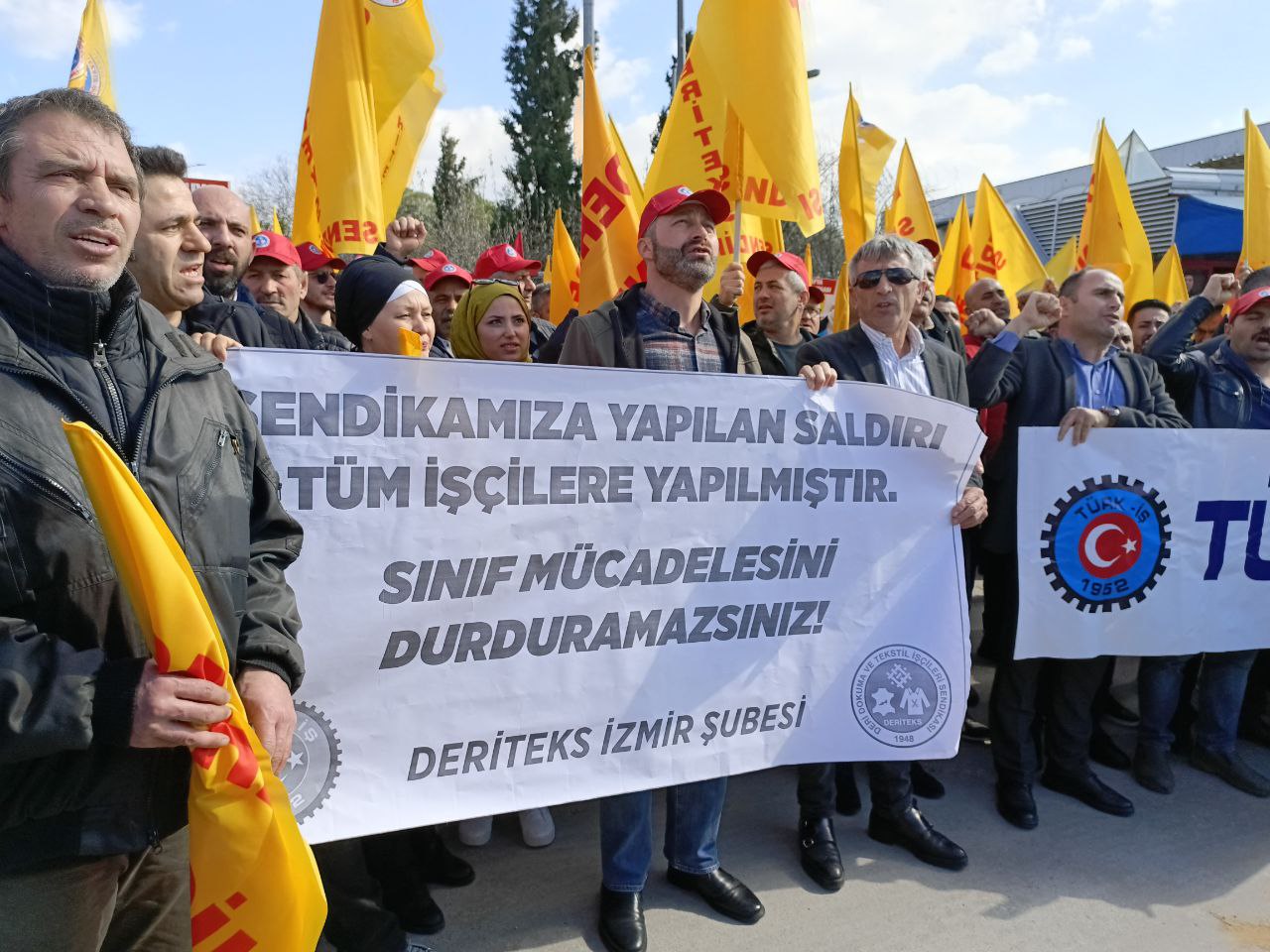 Yanılmaz, DERİTEKS’in savunduğu sendika çizgisinden geri durmayacağını belirterek, işçilerin haklarını 76 yıldır olduğu gibi savunmaya devam edeceklerini vurguladı: “İşçilerimizin insanca yaşam talepleri için 76. yılımızda bir kez daha ifade ediyoruz ki BURADAYIZ. Konfederasyonumuz TÜRK-İŞ ile milyonlarca işçi ile, emek dostlarımız ile BURADAYIZ. HİÇBİR YERE GİTMİYORUZ. Biliyoruz ki sözlerimiz sadece DERİTEKS ’in sözleri değil tüm işçi sınıfın tüm emek dostlarının duygularını ifade etmektedir. Yaşanan bu saldırı karşısında sessiz kalmayacağız. Bu saldırıyı yapanların gerekli cezayı alıncaya kadar sürecin takipçisi olacağız. Mücadele tarihimizden öğrendiğimiz bir şey var. O da her zorlu süreci birlikte aştığımız gibi bu saldırıları da birlikte aşacak sınıf dayanışması ile göğüsleyeceğiz.”