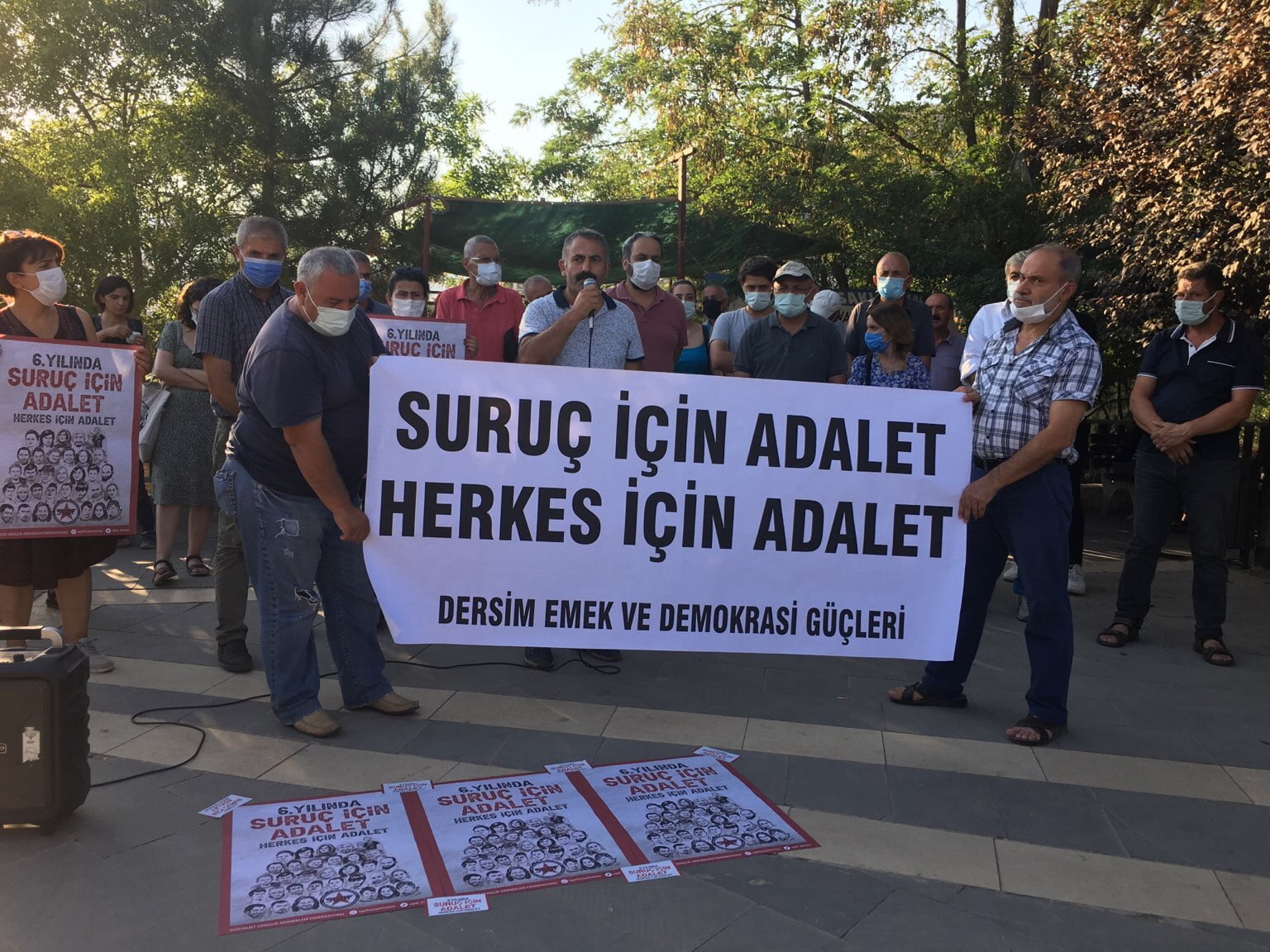 DERSİM- Suruç katliamının altıncı yılında Dersim Emek ve Demokrasi Güçleri adına bir basın açıklaması gerçekleştirildi. Açıklamada Peri Belediyesi Eş Başkanı Orhan Çelebi ve HDP Dersim milletvekili Alican Önlü konuşma yaptılar.