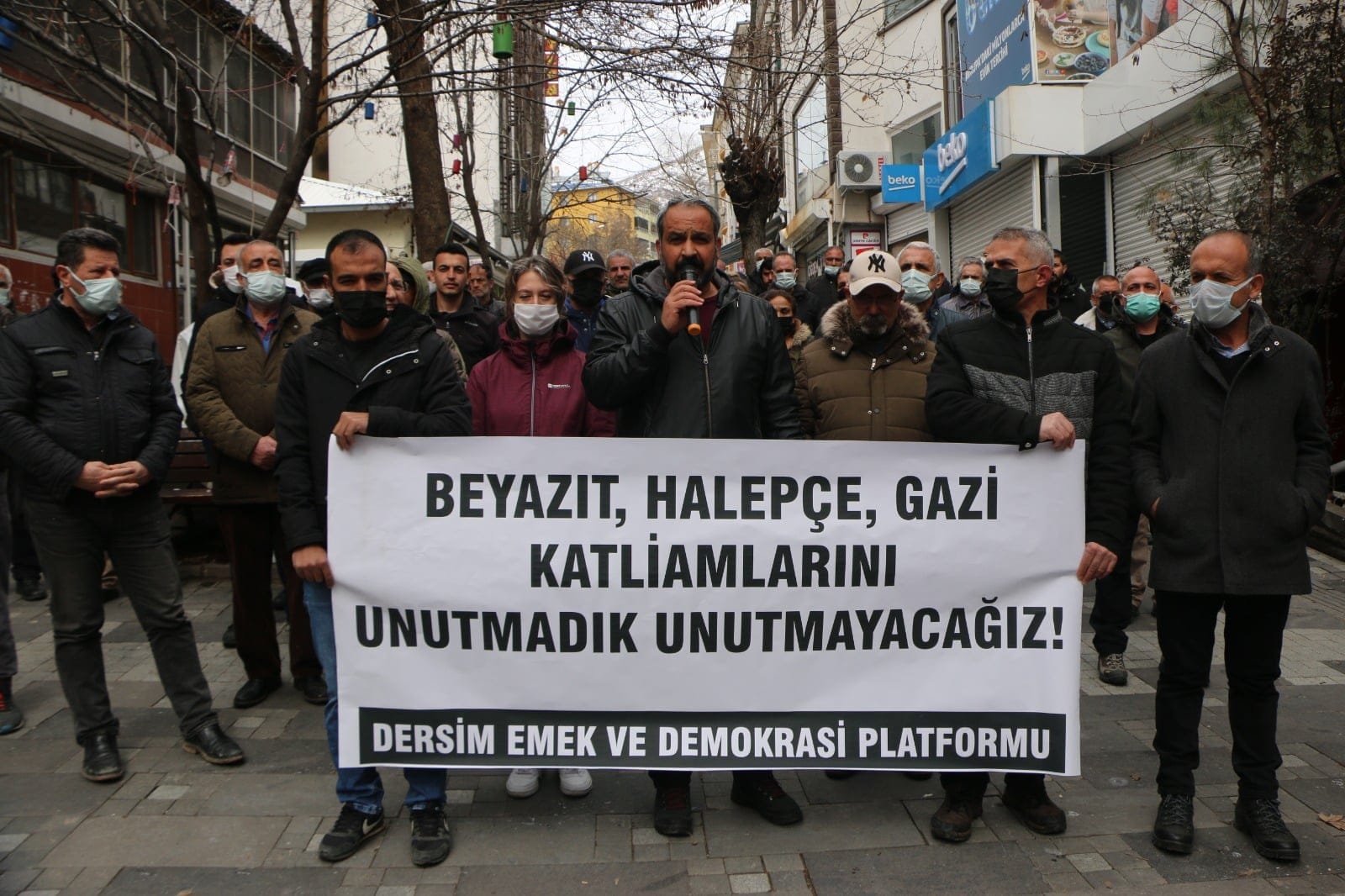 Dersim Emek ve Demokrasi Platformu olarak, tüm bu katliamları kınadığımızı, hesap sormaya devam edeceğimizi, unutmayacağımızı ve unutturmayacağımızı bir kez daha yineliyoruz ve katliamların son bulacağı, katliam yapanların yargılanacağı, özgür, bağımsız, demokratik bir ülke mücadelemizden vazgeçmeyeceğimizi bir kez daha belirtiyoruz.”