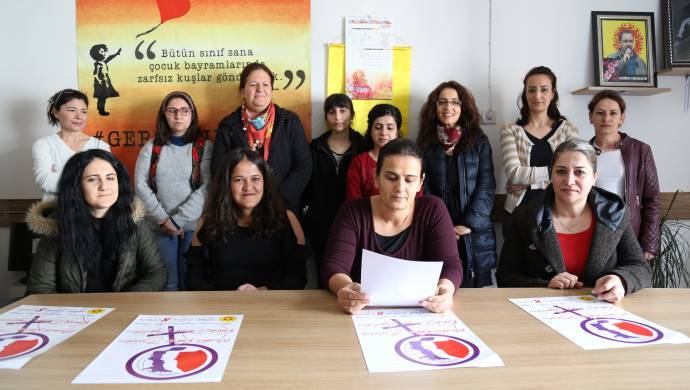 Şahin, “Kamusal alanları, kentlerimizi ve yaşam alanlarımızı daraltarak bizi eve hapsetmeye çalışanlara, bizi babayla, kocayla, aileyle tanımlayanlara, işsiz bırakarak itaate zorlayanlara karşı örgütlü kimliğimize ve sendikalaşma hakkımıza sahip çıkıyoruz” dedi.