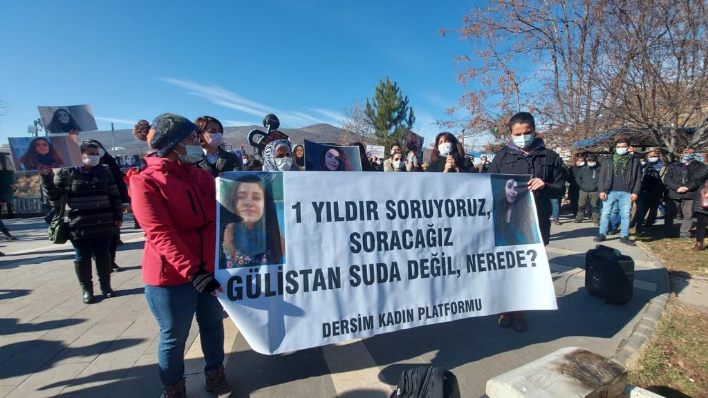 DERSİM- Dersim Kadın Platformu, Gülistan Doku’nun kaybolmasının birinci yılı dolayısıyla Seyit Rıza Meydanı’nda basın açıklaması yaptı.