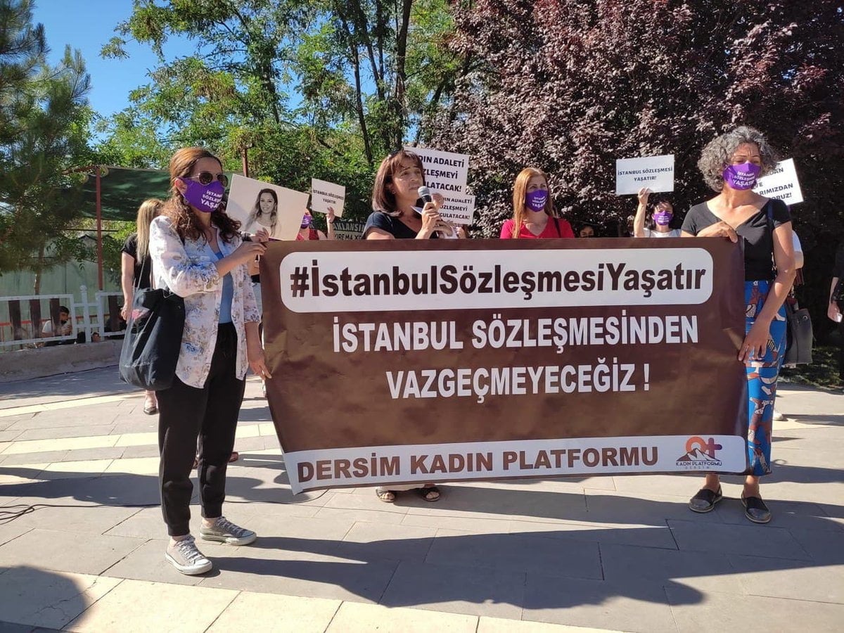DERSİM- Dersim Kadın Platformu, İstanbul Sözleşmesi’nin feshedilmesine karşı Seyit Rıza Meydanı’nda basın açıklaması yaptı.