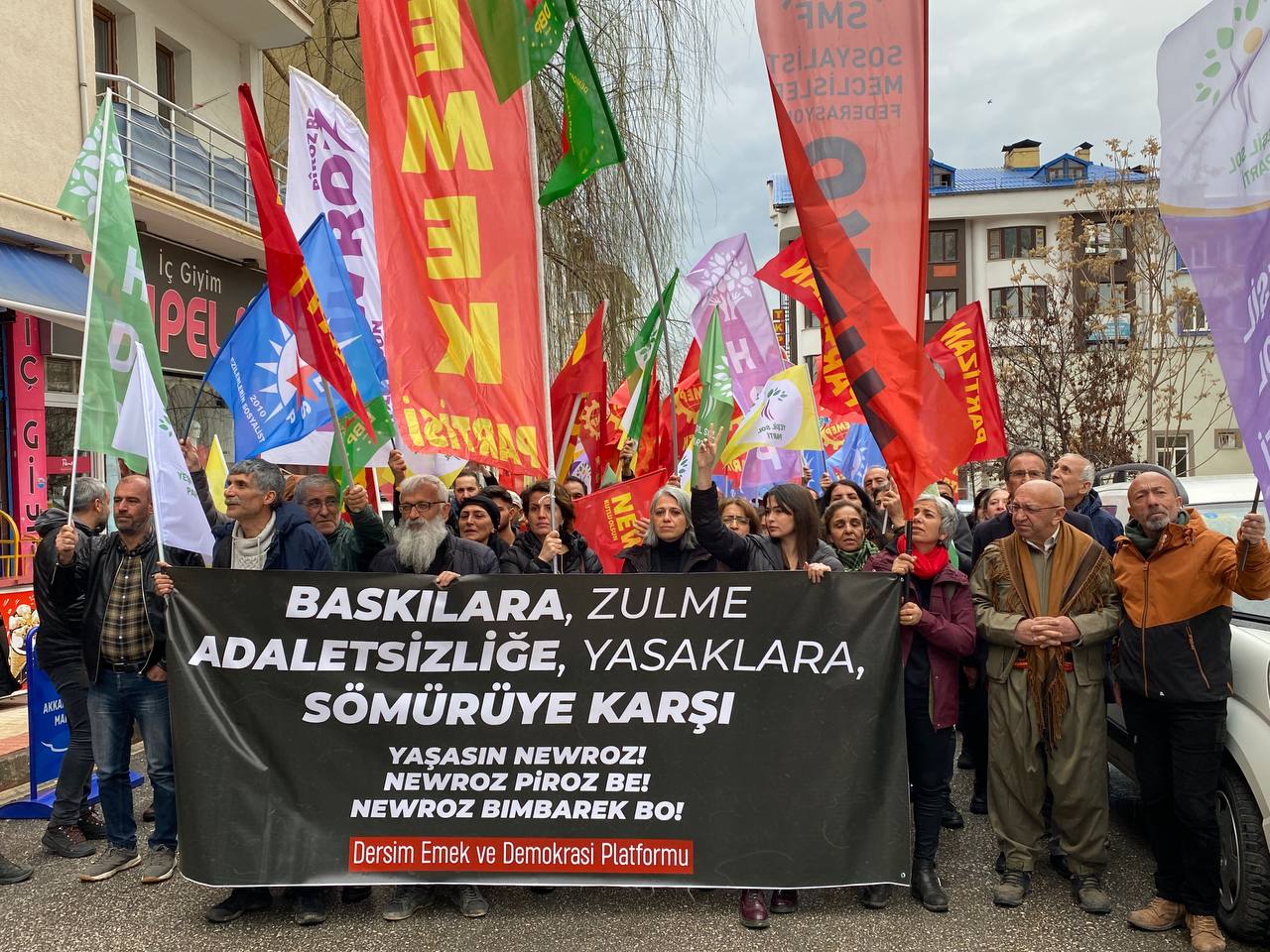 Dersim Newrozu Sanat Sokağı’ndan Seyit Rıza Meydanı’na yapılan yürüyüşle başladı. Partizan, ESP, SMF, HDP ve EMEP gibi devrimci, demokrat kurum ve kitle örgütlerinin bileşeni olduğu Dersim Emek ve Demokrasi Platformu’nun ortak pankartıyla yüründü. Yürüyüşte sık sık “Biji Newroz, Newroz Piroz Be”, “Biji Berxwedana Zindana” sloganları atıldı.