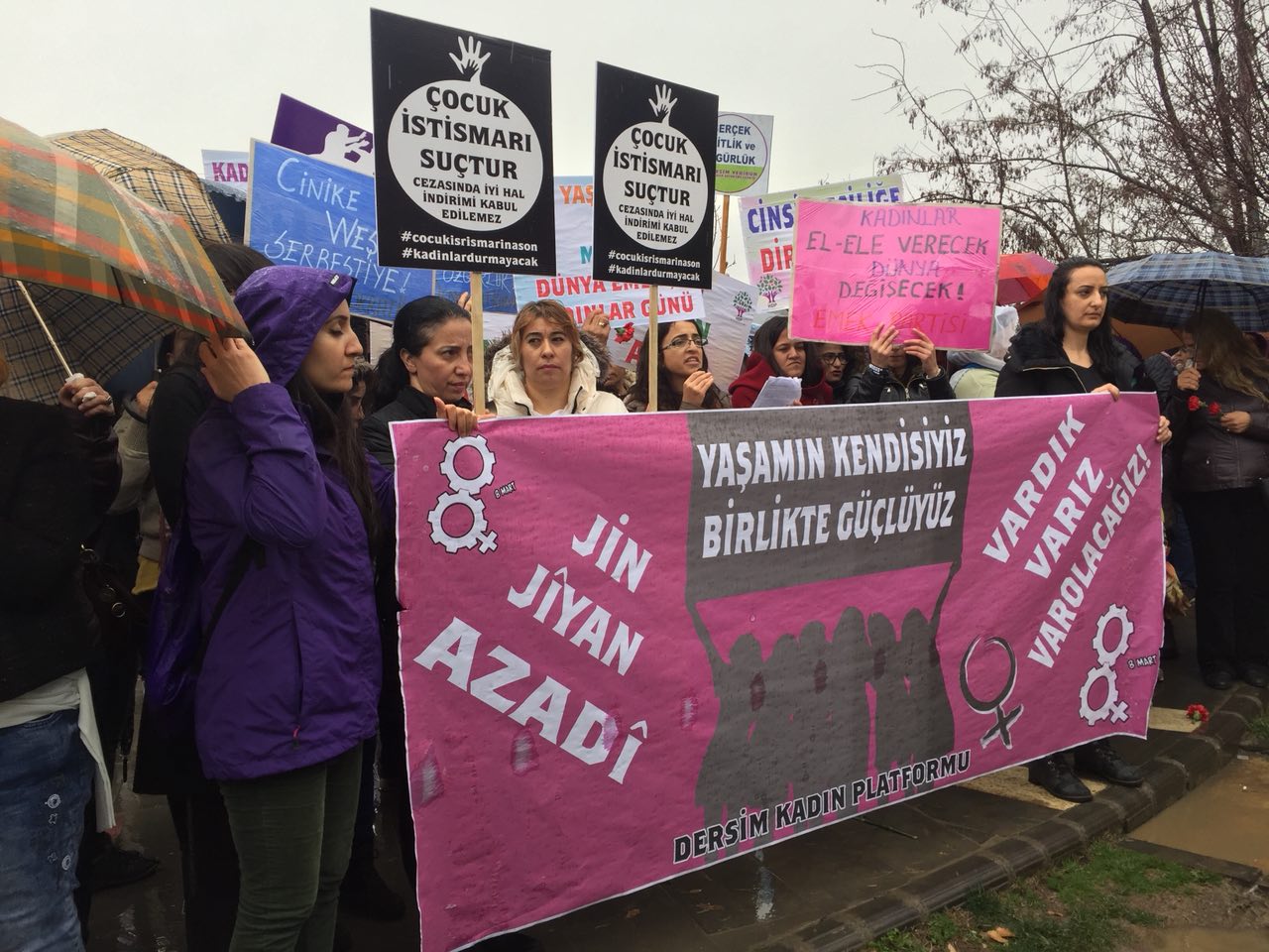 “Kadınlar için daha fazla yoksulluk, göç, şiddet ve ayrımcılık anlamına gelen savaş politikalarının son bulması için, eşit, özgür, demokratik bir yaşamın sağlanması için, kadına yönelik her türlü şiddeti önleyici yasal düzenlemelerin acilen yapılması için, eğitim alanı başta olmak üzere ve kamusal alanın tümüne yayılan politikalardan vazgeçilmesi için, kadınlardan yana imza atılan uluslararası sözleşmelerin gerekliliklerinin uygulanması için, kamusal ücretsiz kreş hakkımız için vardık, varız, var olacağız, alanlardayız, susmayacağız.”