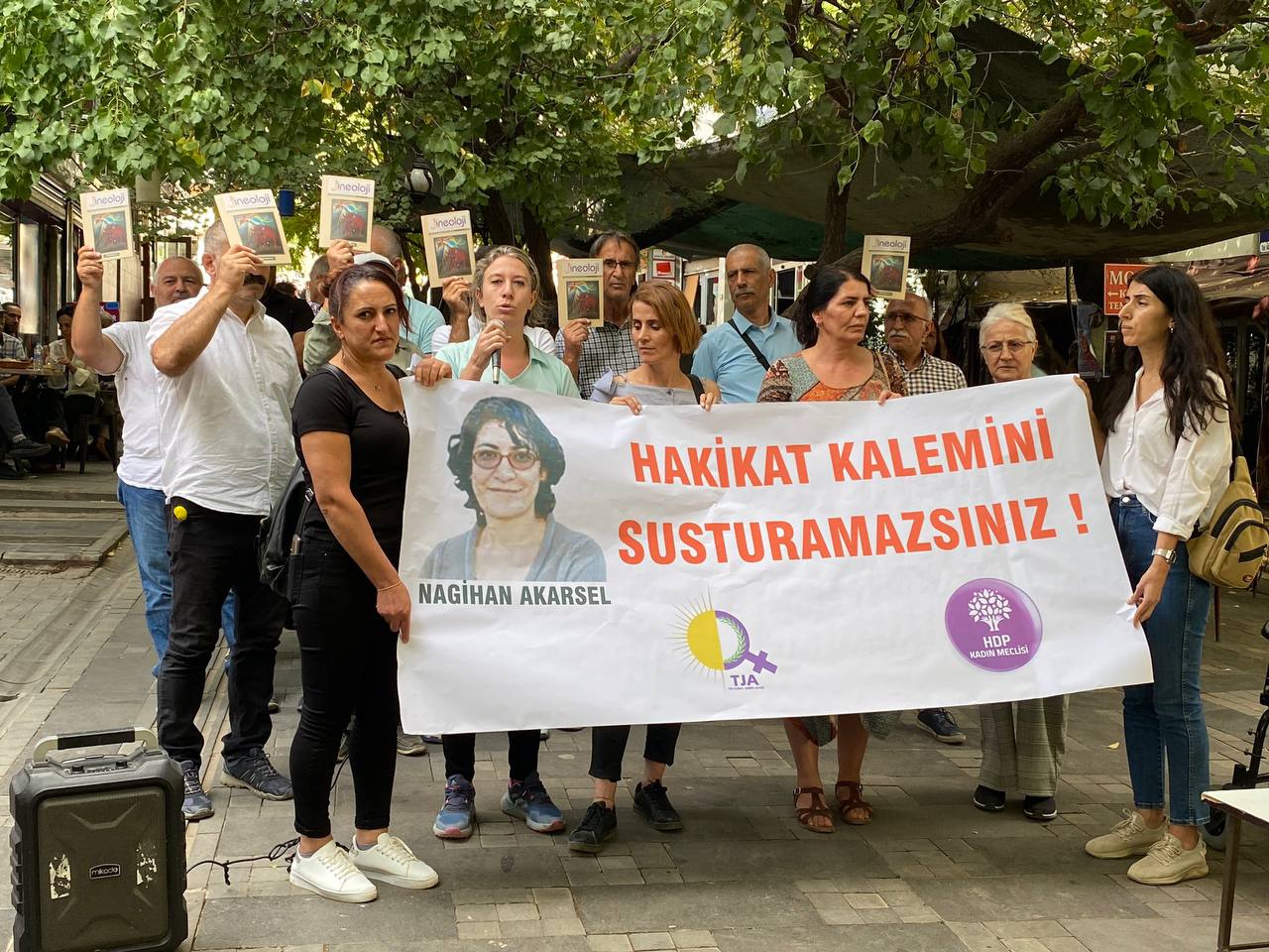 Tevgera Jinen Azad (Özgür Kadın Hareketi) ve HDP Dersim Kadın Meclisi’nin düzenlediği eyleme devrimci kurumlar ve demokratik kitle örgütlerinin temsilcileri katıldı. “Hakikat Kalemini Susturamazsınız!” yazılı ozalitin açıldığı eylemde basın metnini HDP Dersim Eş Başkanı Nazlı Çelik Öz okudu. Basın metninde “Biz kadınlar bir kez daha haykırıyoruz: 21. yüzyıl kadın yüzyılı olacak. Yoldaşımız Nagihan’ın öncülük ettiği hakikat kalemini susturamazsınız.” denildi. Basın açıklaması “Nagihan Akarsel yoldaş ölümsüzdür!” sözleri ve “Jin Jiyan Azadi” sloganları ile 5 dakikalık oturma eyleminin ardından sona erdi.