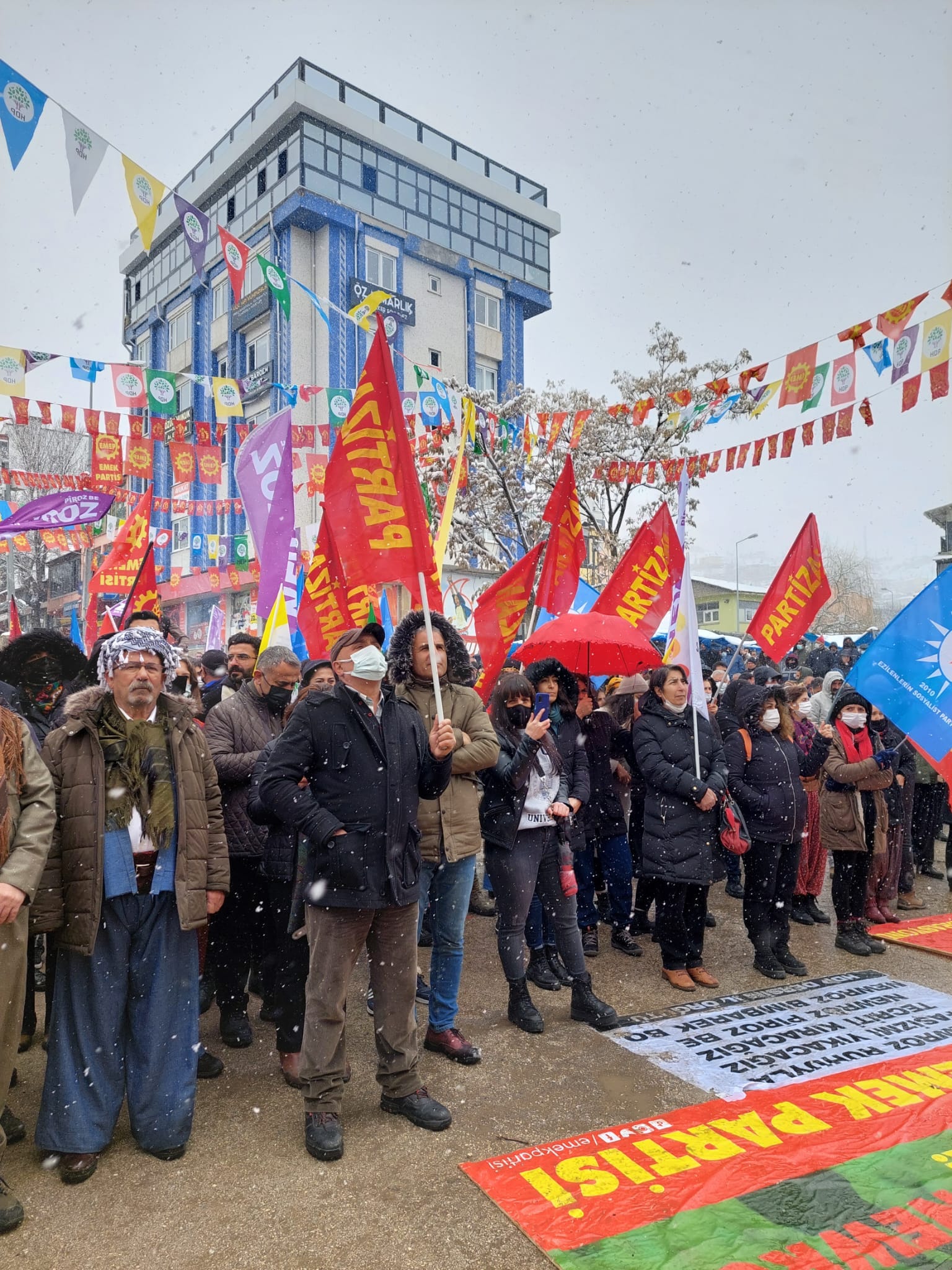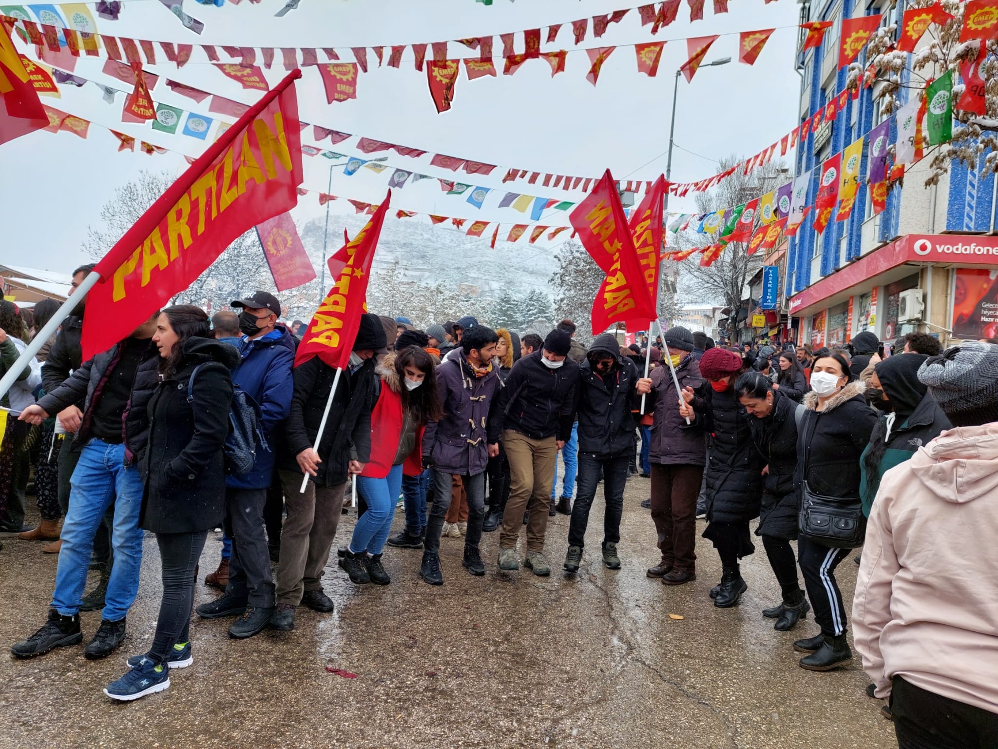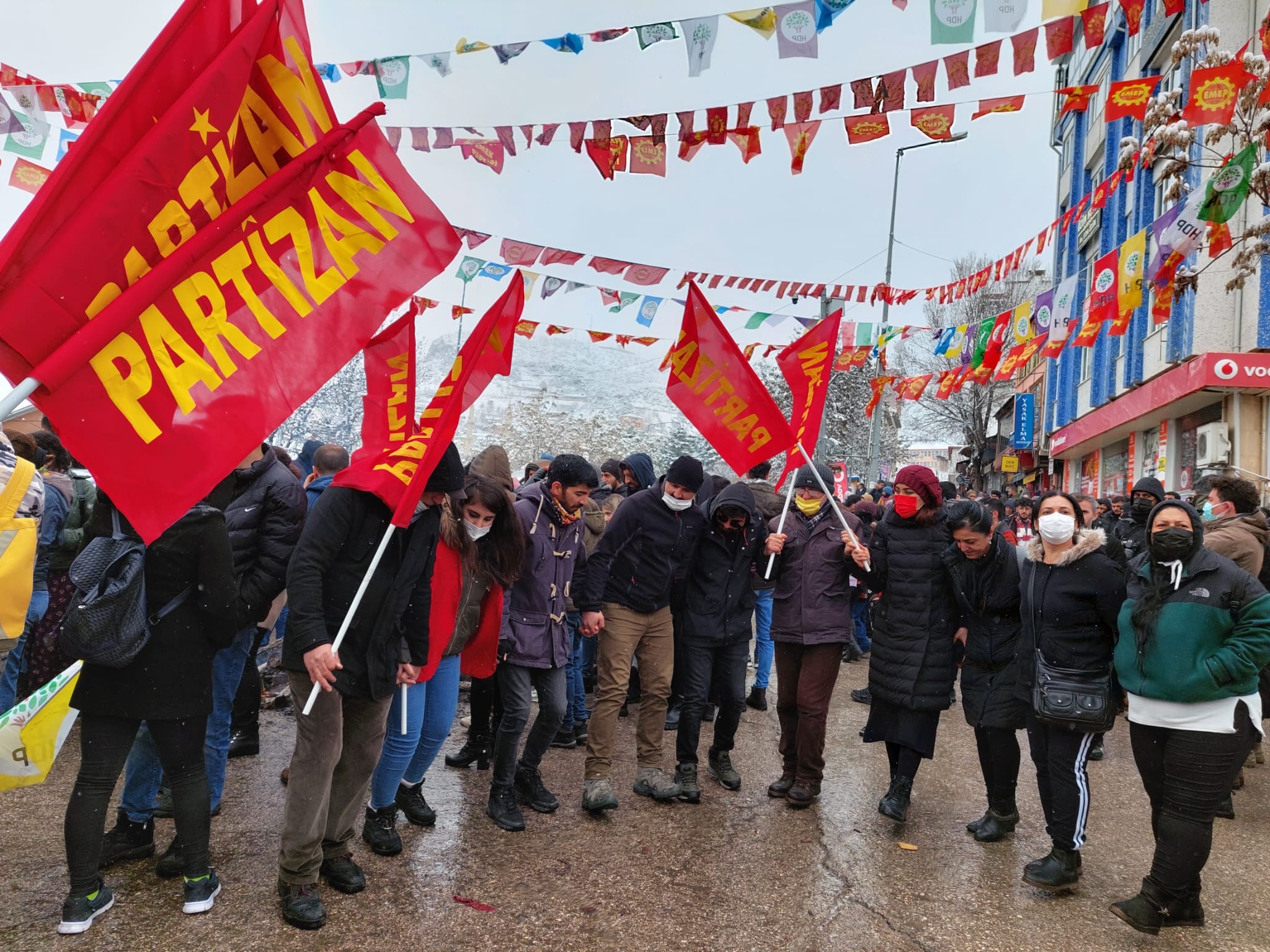 DERSİM- Dersim’de Newroz kutlaması için sabah saatlerinde Dersim Sanat Sokağı’nda toplanılmaya başlandı. Aralarında Partizan’ının da olduğu devrimci demokrat, yurtsever kurumlar Seyit Rıza Meydanı’na yürüdü. Yürüyüş anında sıklıkla “Önderimiz İbrahim Kaypakkaya”, “Newroz piroz be”, “Yaşasın devrimci dayanışma” sloganları atıldı.