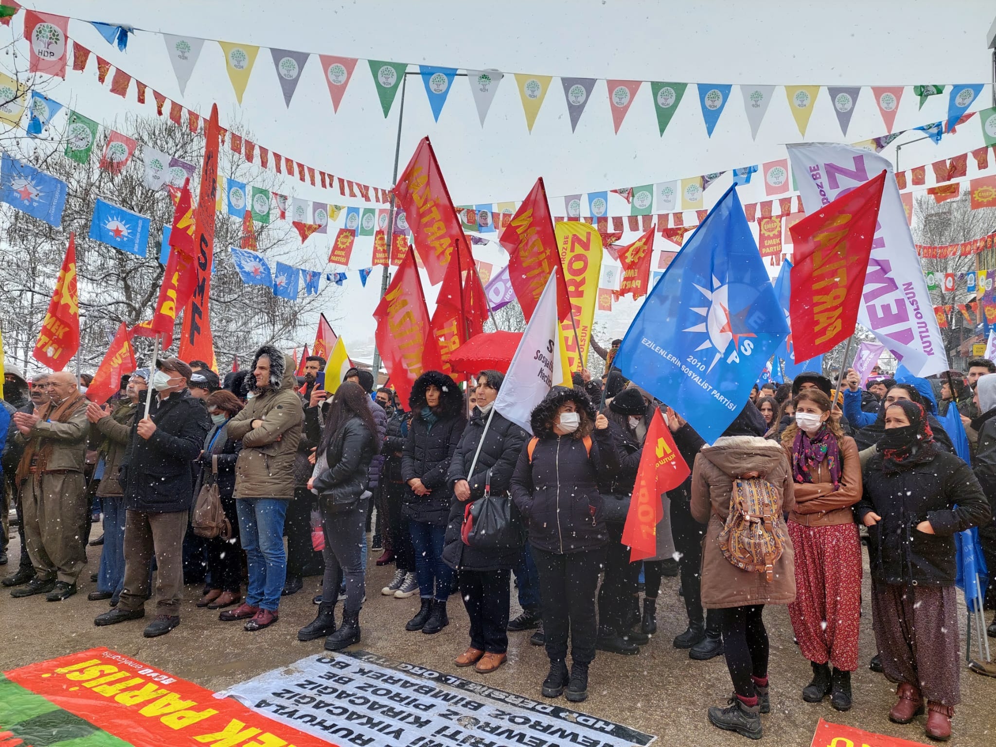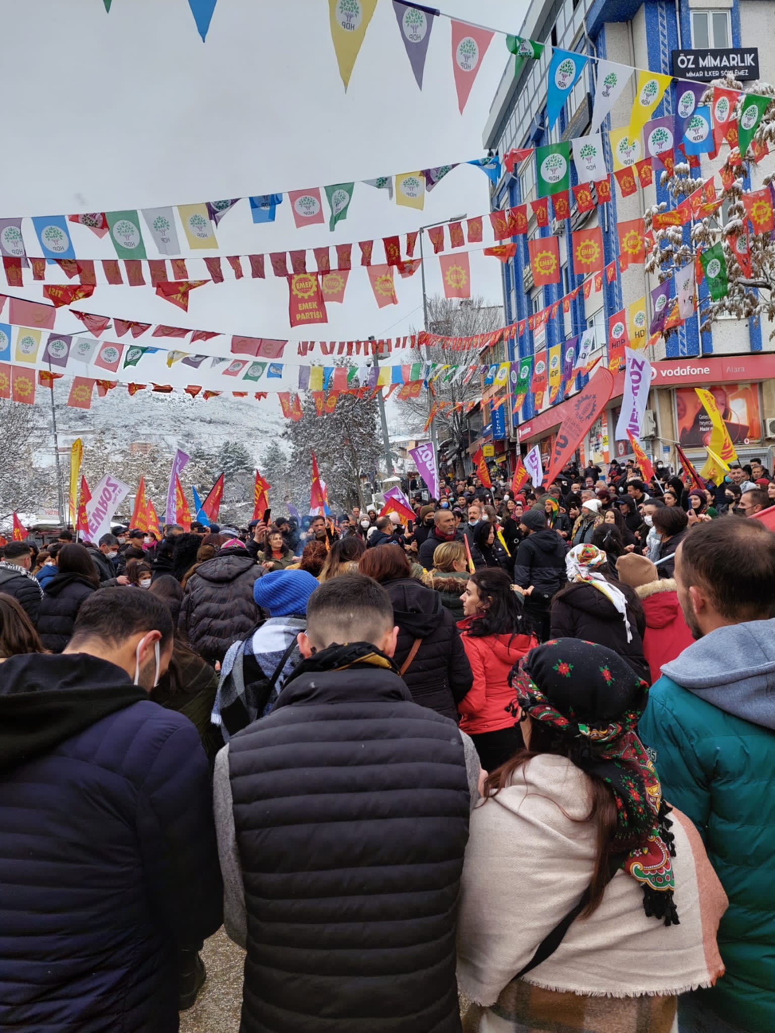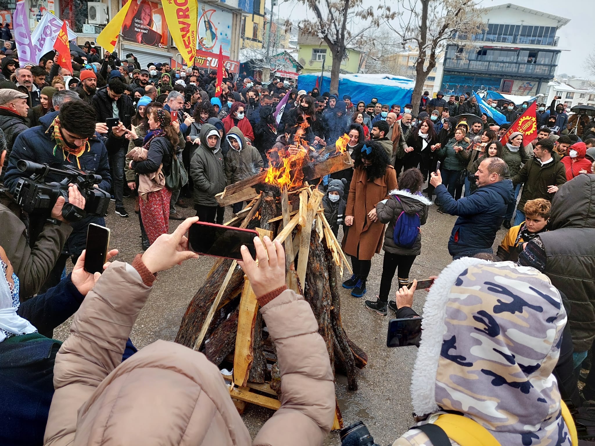 DERSİM- Dersim’de Newroz kutlaması için sabah saatlerinde Dersim Sanat Sokağı’nda toplanılmaya başlandı. Aralarında Partizan’ının da olduğu devrimci demokrat, yurtsever kurumlar Seyit Rıza Meydanı’na yürüdü. Yürüyüş anında sıklıkla “Önderimiz İbrahim Kaypakkaya”, “Newroz piroz be”, “Yaşasın devrimci dayanışma” sloganları atıldı.