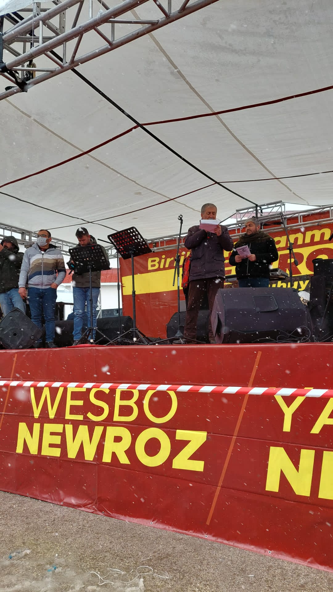 Seyit Rıza Meydanı’nda Newroz ateşi yakılmasından sonra kurum temsilcilerinin konuşmaları gerçekleşti. Dersim Belediye Başkanı Fatih Maçoğlu’nun konuşmasının ardından Dersim Emek ve Demokrasi Platformu adına Yusuf Topçu basın metnini okudu. Basın metninde gündeme ilişkin değerlendirme yapılarak, “emperyalist savaşlara, ülkeyi yeni tehditlerle yüz yüze bırakan iktidarın politikalarına karşı, Kürt sorununda eşit haklar temelinde barışçıl çözüm ve iş ekmek ve insanca yaşam için mücadeleyi yükseltelim” çağrısı yapıldı.