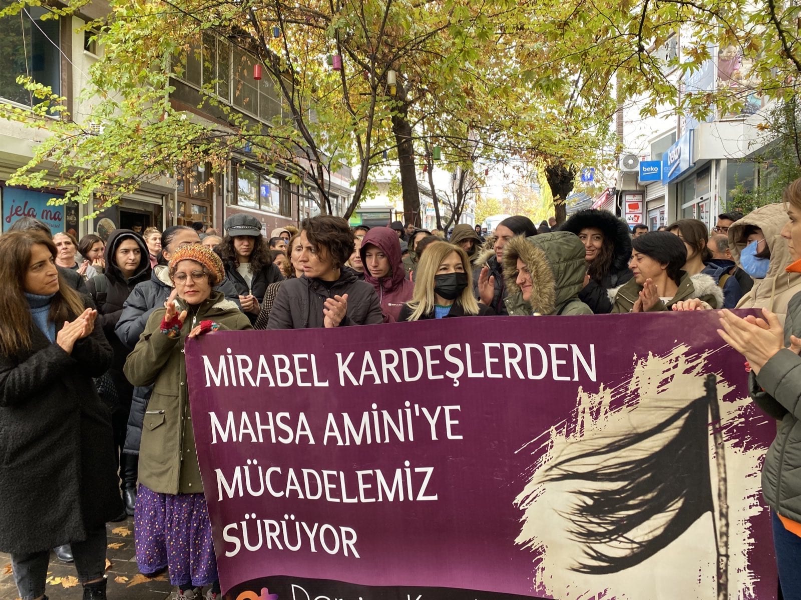 Dersim Kadın Platformu 25 Kasım Kadına Yönelik Şiddete Karşı Uluslararası Mücadele Günü dolayısıyla Sanat Sokağı’nda açıklama yaptı. “Mirabal Kardeşlerden Jîna Emînî’ye Mücadele Sürüyor” şiarlı pankartın açıldığı eylemde Dersim Kadın Platformu adına SES Şube Eşbaşkanı Serap Kahraman konuştu.