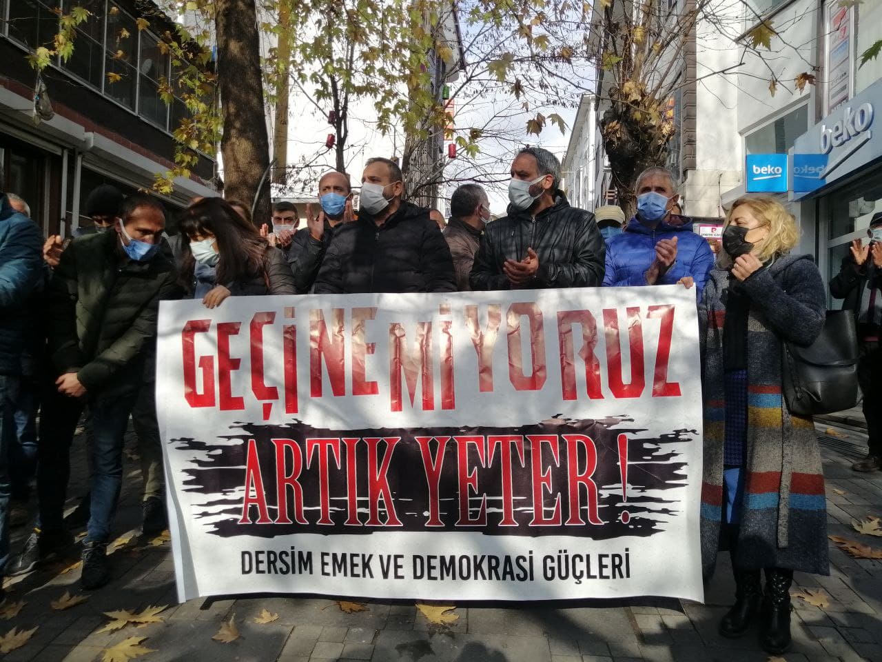 Dersim Emek ve Demokrasi Güçleri, artan kur fiyatlarıyla birlikte yaşanan zamları Seyit Rıza Meydanı’nda protesto etmek istedi. Açıklama öncesi meydanı ablukaya alan polis, açıklama yapmak isteyen kitleye saldırdı. Valiliğin pandemi nedeniyle getirdiği eylem ve etkinlik yasağını gerekçe gösteren polislerin engeline rağmen emek ve demokrasi güçleri “Kahrolsun faşist diktatörlük”, “Baskılar bizi yıldıramaz” ve “Faşizme karşı omuz omuza” sloganları, alkış ve ıslıklarla, Sanat Sokağı’na yürüdü.