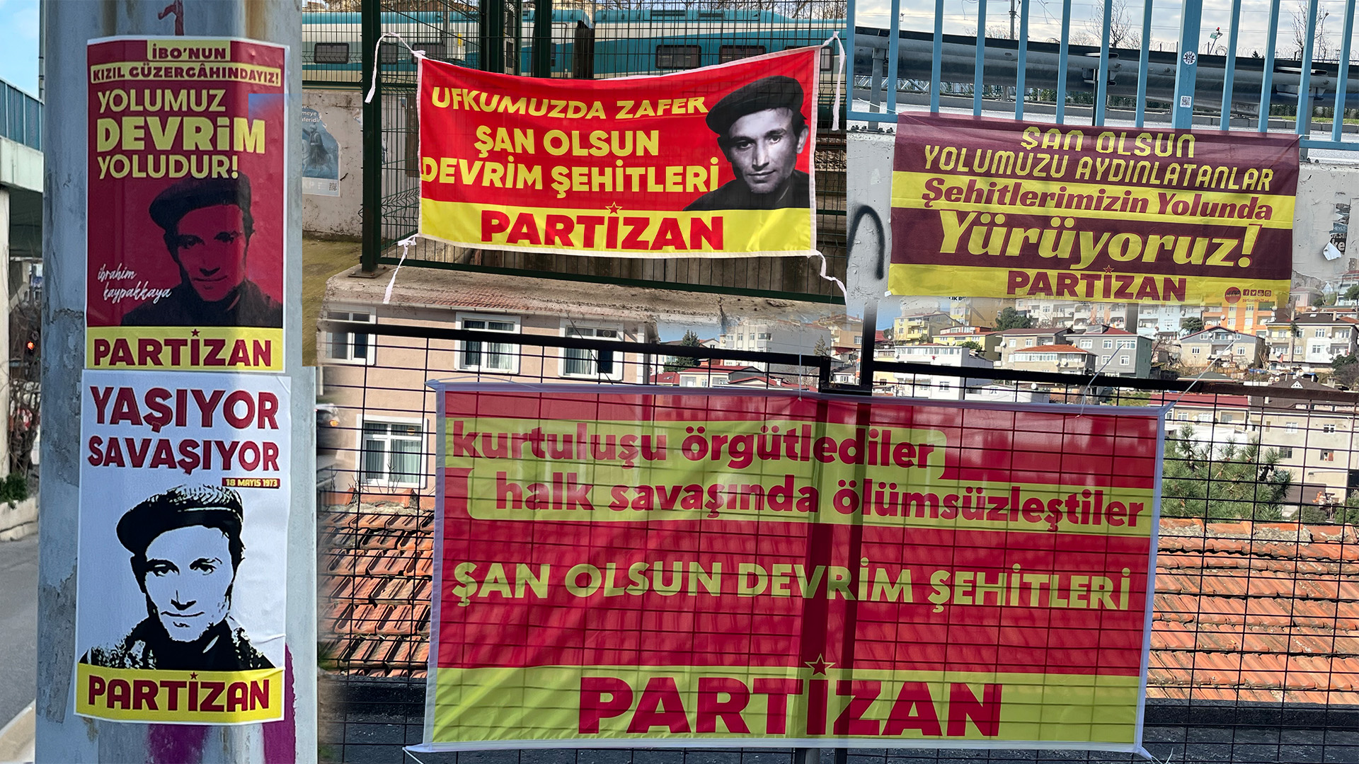 Partizan, İstanbul’un Kadıköy ve Kartal ilçeleri ile ve 1 Mayıs ve Gülsuyu Mahallerinde astığı pankartlarla devrim şehitlerini andı. “Kurtuluş Örgütlediler, Halk Savaşında Ölümsüzleştiler- Şan Olsun Devrim Şehitleri”, “İbo’nun Kızıl Güzergâhındayız, Yolumuz Devrim Yoludur”, “Ufkumuzda Zafer, Şan Olsun Devrim Şehitleri” şiarıyla asılan pankartla ile devrim şehitlerinin mücadeleleri selamlandı.