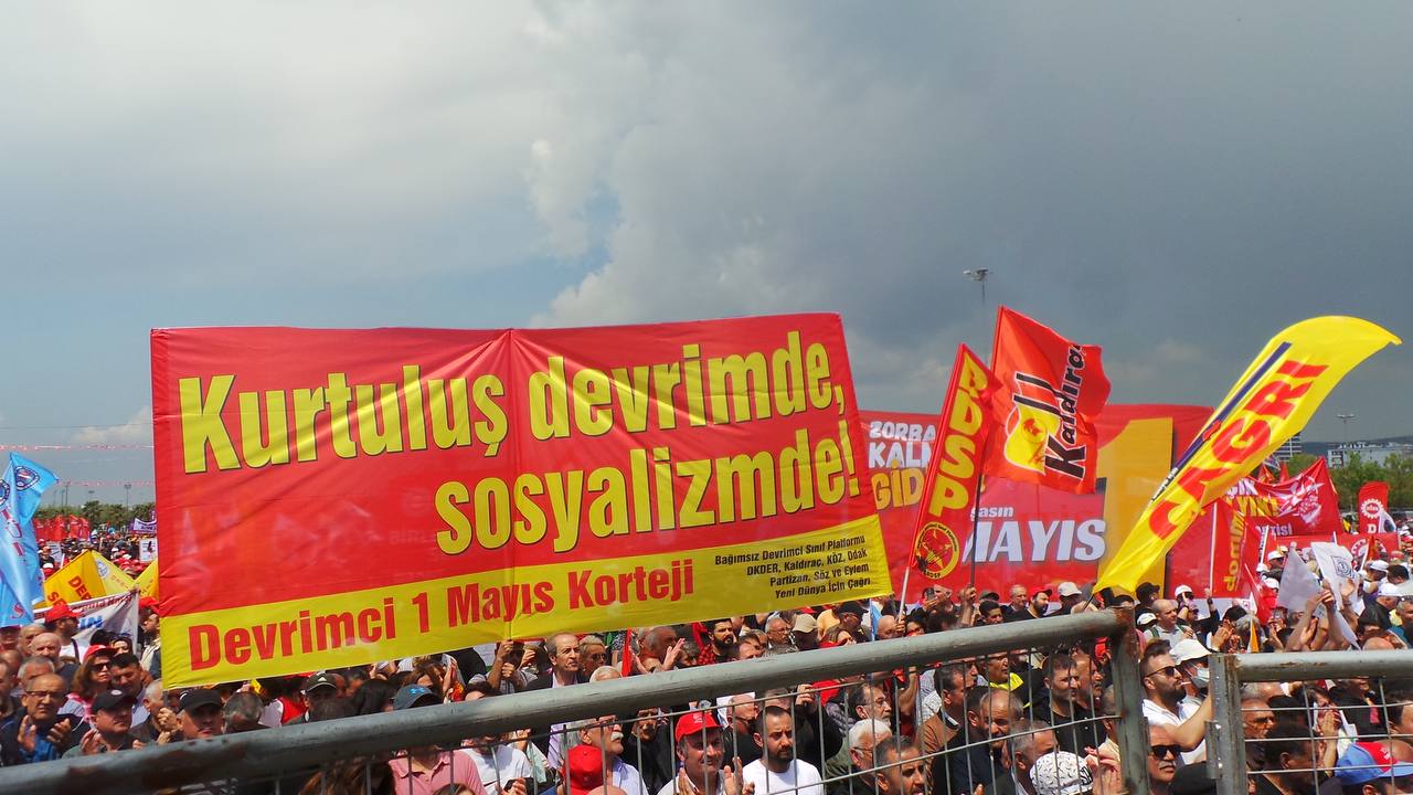 “1 Mayıs 2023, bir yandan savaş bulutlarının yoğunlaştığı, bir yandan ekonomik krizin işçi ve emekçilerin üzerine tüm ağırlığı ile bindiği; bir yandan sınıf savaşımının sertleşme eğilimlerinin arttığı, bir yandan deprem ile yüz binlerce insanın enkaz altında ölüme terkedildiği ve tüm bunların ardından, 14 Mayıs seçimlerinin gündeme oturduğu bir döneme denk geldi.