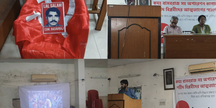 Kagaar Operasyonu kapsamında şehit düşen tüm devrimcilerin anısına, ülkenin suyu, ormanları, toprakları, madenleri ve onurunu koruma mücadelesini ileri taşımak ve Orta Hindistan’da Adivasi halkına yönelik süren barbarca devlet katliamının durdurulması talebiyle Kalküta’nın Ripon Street bölgesindeki Lokayata Toplantı Salonunda anma etkinliği gerçekleştirdi.