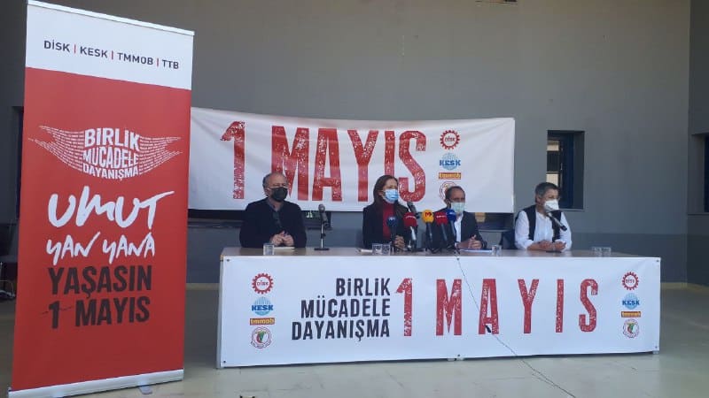 HABER MERKEZİ– DİSK, KESK, TMMOB ve TTB genel başkanları, 1 Mayıs 2021 kutlama ve anmalarına ilişkin ortak programı Mimarlar Odası İstanbul Şubesi’nde açıkladı.