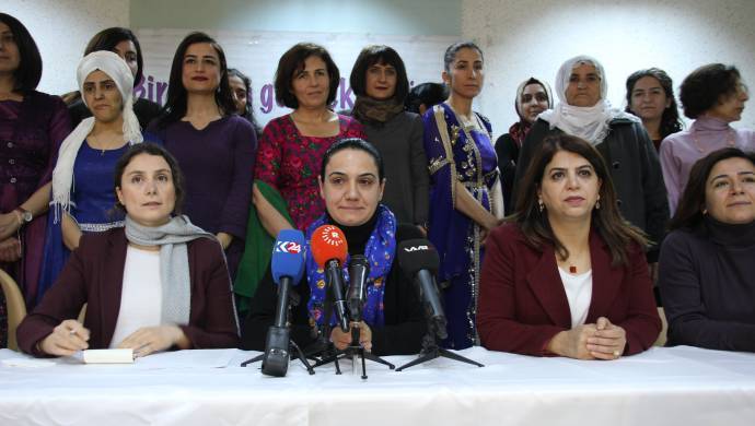 Dicle Amed Kadın Platformu (DAKP), 8 Mart Dünya Kadınlar Günü programını Eğitim Sen Diyarbakır 1 No’lu Şubesi’nde yaptığı basın toplantısıyla açıkladı. Toplantıya, Halkların Demokratik Partisi (HDP) Diyarbakır Milletvekili Sibel Yiğitalp, Demokratik Toplum Kongresi (DTK), Demokratik Bölgeler Partisi (DBP), Özgür Kadın Hareketi (TJA), Kamu Emekçileri Sendikaları Konfederasyonu (KESK) Kadın Meclisi, Barış Anneleri Meclisi yöneticileri ve çok sayıda kadın katıldı.