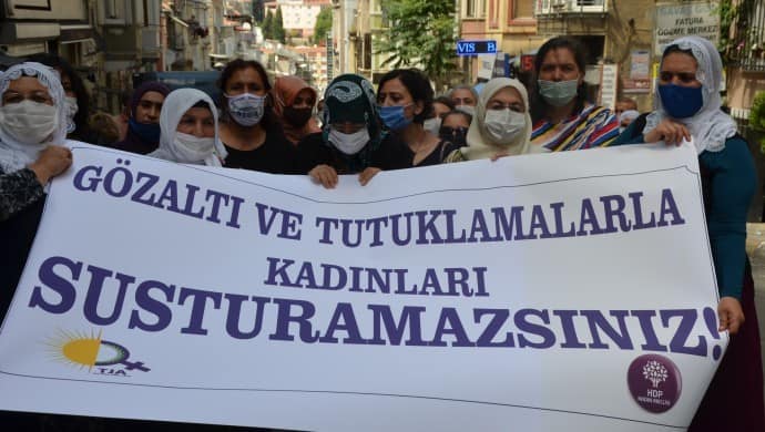 Mardin’nde yapılan eylemde, AKP’nin kadın düşmanı politikalarının HDP’li kadınları durdurmayacağını belirten HDP Sözcüsü Ebru Günay, “Bizim kadın mücadelemiz baskılarla, gözaltılarla yıllarca mücadele etti. Bizler emek vererek, mücadele ederek ve kadınlarla dayanışarak bugünlere geldi. AKP’nin kadın kırımı operasyonları, baskıları bizi yıldırmayacaktır” diye konuştu. AKP’nin kadın politikalarının şiddet ve cinayetlerin önünü açtığını belirten Günay, “Biz bir kişi daha eksilmeyeceğiz. Bulunduğumuz her yerde her koşulda kadın özgürlük mücadelemizi güçlendirmeye devam edeceğiz. Başta TJA dönem sözcümüz Ayşe Gökkan olmak üzere tüm gözaltına alınan kadın arkadaşlarımız derhal serbest bırakılmalı ve kadın mücadelemiz dayanışma ile büyümeli” ifadelerini kullandı.