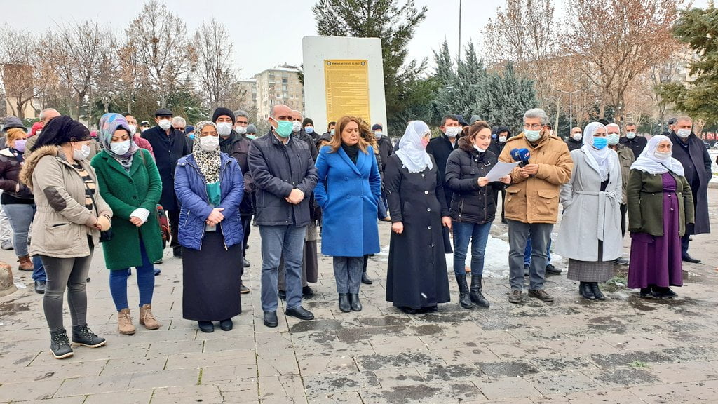 HABER MERKEZİ- Demokratik Bölgeler Partisi (DBP) Diyarbakır İl Örgütü, tutukluların tecride karşı başlattığı süresiz dönüşümlü açlık grevlerine ilişkin Koşuyolu Parkı İnsan Hakları Anıtı önünde basın açıklaması yaptı. Açıklamaya, Hakların Demokratik Partisi (HDP) il ve ilçe yöneticileri, HDP Diyarbakır Milletvekili Remziye Tosun, Tevgera Jînen Azad (Özgür Kadın Hareketi-TJA) Özgürlük için Hukukçular Derneği (ÖHD), Medeniyetler Beşiğinde Yakınlarını Kaybedenlerle Yardımlaşma, Dayanışma, Birlik ve Kültür Derneği (MEBYA-DER), Tutuklu Aileleriyle Yardımlaşma Derneği (TUAY-DER) katıldı.