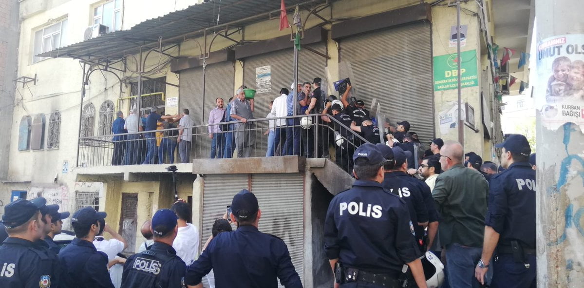 Sur, Kayapınar ve Yenişehir ilçe binalarının kapıları da polislerce kapatılırken, aralarında milletvekillerin de bulunduğu HDP’lilerin parti binalarındaki bekleyişi sürüyor. (MA)