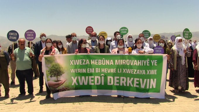 “Xweza hebûna mirovahiyê, werin em bi hevre li xwezaya xwe xwedî derkevin” pankartının ve “Cudi yanıyor”, “Li xwezayê xwedî derkeve” yazılı dövizlerin taşındığı eyleme DTK Eşbaşkanı Berdan Öztürk, DBP Eş Genel Başkanı Keskin Bayındır, HDP’li milletvekilleri, HDP il ve ilçe örgütleri, ekolojistler ve çok sayıda yurttaş katıldı.