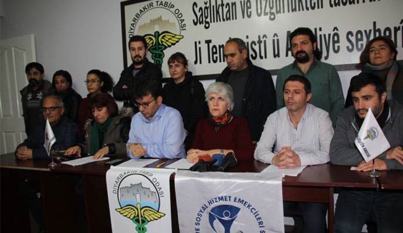 HABER MERKEZİ- Sağlık ve Sosyal Hizmet Emekçileri Sendikası (SES) Diyarbakır Şubesi ve Diyarbakır Tabip Odası (DTO), hapishanelerde devam eden açlık grevlerine ilişkin Tabip Odası’nda basın açıklaması düzenledi. Açıklamaya, Türk Tabipleri Birliği (TTB) Merkez Konseyi Üyesi Halis Yerlikaya ile DTO ve SES yöneticileri katıldı.