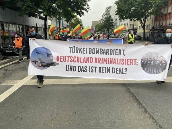 Bu işgal saldırısına karşı Almanya’nın Düsseldorf şehrinde bir yürüyüş gerçekleştiriletek işgal saldırısı protesto edildi.