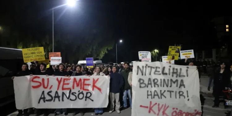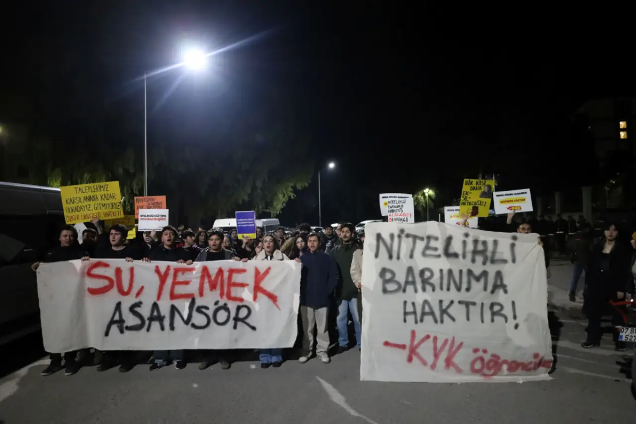 Öğrenciler olarak yönetimden taleplerini yineleyen öğrenciler, “Yönetimden aylardır bozuk olan asansörlerin onarılmasını temiz, sıcak suya kesintisiz erişmeyi ve sağlıklı kaliteli yemek yiyebilmek için ya yemek şirketinin değiştirilmesini ya da sürekli denetlenmesini istiyoruz” dedi.
