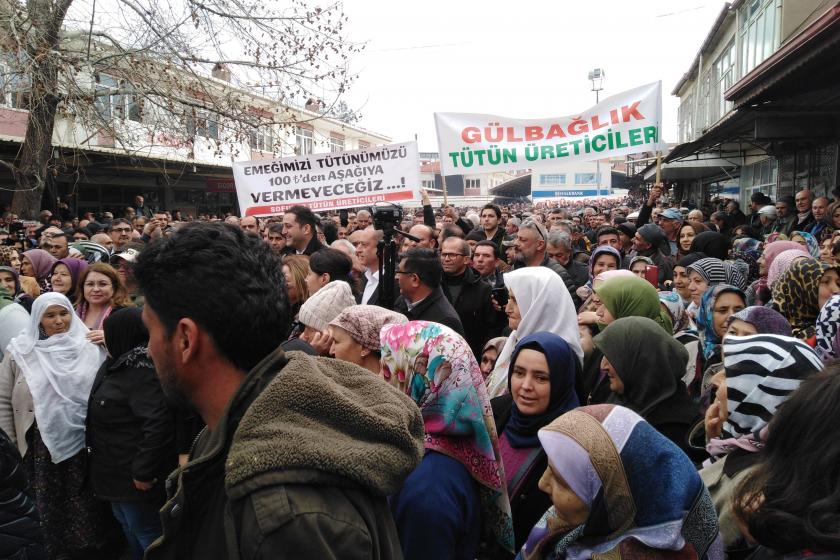 Bir başka tütün üreticisi Gülsüm Gül ise, “Tütün şirketleri kilogramdan bin 900 lira kazanırken biz neden 55 liraya razı olalım” diye sordu.
