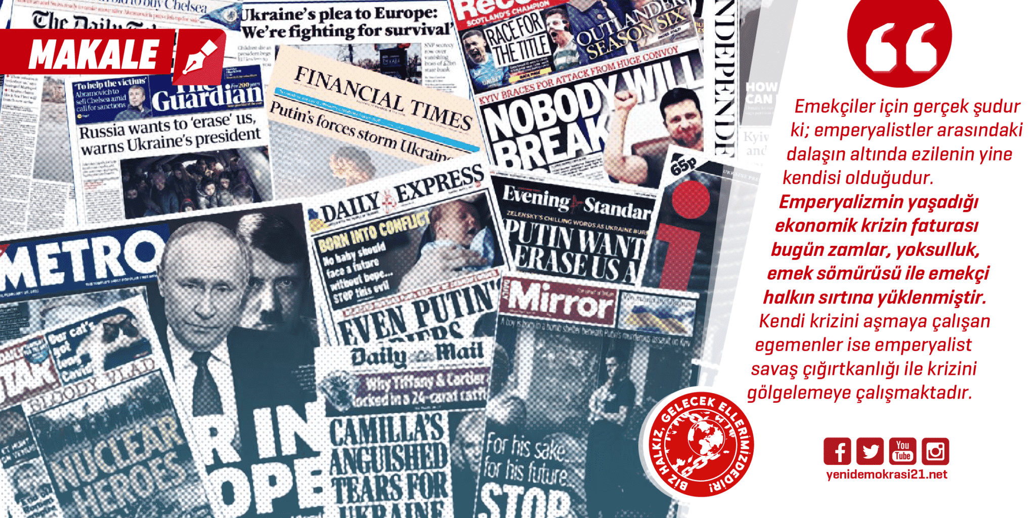 Egemenler çıkarları doğrultusunda emekçileri kendi siyasi ve politik hegemonyası altına almaya çalışır. Bunun için her türlü propaganda aracını ivedilikle kullanarak sömürü düzenini meşrulaştırmayı amaçlar. Ezelden beri bu hegemonyasını kültürel ve toplumsal olarak halkın tüm hücrelerine kadar yaymaktadır. Bugün kullanmış olduğumuz yayın araçlarının birçoğu egemenlerin elinde şekillenmektedir. Basılı yayından, görsel ve işitsel medyaya kadar egemen sınıfların propaganda aracı olarak geniş halk kitlelerini kontrol altında tutmaktadır. Rus emperyalizminin Ukrayna işgal saldırısı ile birlikte özellikle emperyalist merkezlerde burjuva medya, işgali, halk kitlelerine kendi çıkarlarına uygun biçimde lanse etmektedir. Bunun yanı sıra emperyalist bloklar sosyal medyayı “propaganda savaşı” ile yeni rekabet alanına dönüştürmüştür.