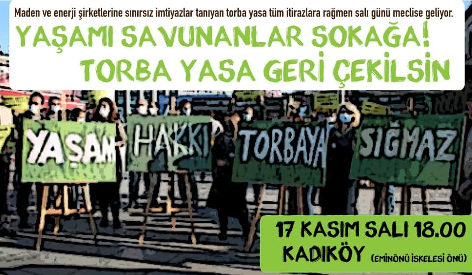 Bu yasanın geri çekilmesi için ekoloji örgütleri başta olmak üzere, tüm sivil inisiyatifler, dernekler, muhalif parti ve örgütler olarak bir araya geldik. Salı günü öğleden sonra farklı yereller bölgelerde ve İstanbul’da saat 18.00’da doğayı savunmak, daha fazla yıkıma izin vermemek için sokaklarda olacağız.”