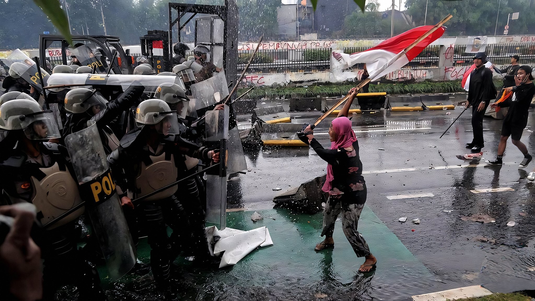 Öğrenciler, 29 Ağustos günü Cakarta Bölge Polis Merkezi’ne yürüdü ve polisle çatıştı. Öğrenciler polise şişe, taş ve işaret fişeği atarken, polis öğrencilere tazyikli su ve biber gazıyla saldırdı.