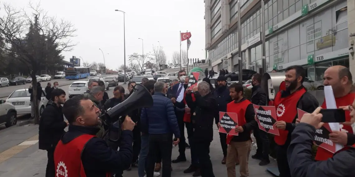 Ankara’da özelleştirmeler sonrası elektrik dağıtım görevini ihale ile alan Sabancı Holding’e ait EnerjiSA bünyesinde çalışan işçileri performans düşüklüğü gibi türlü bahanelerle işten attı. İşçilerin sendika üyesi olması ve sefalet ücretlerine karşı haklarını talep etmesi sonrası yaşanan bu işten atma uygulamasına DİSK/Enerji-Sen şirketin Genel Müdürlük binası önünde yaptığı eylemlerle tepki göstermeye devam ediyor.