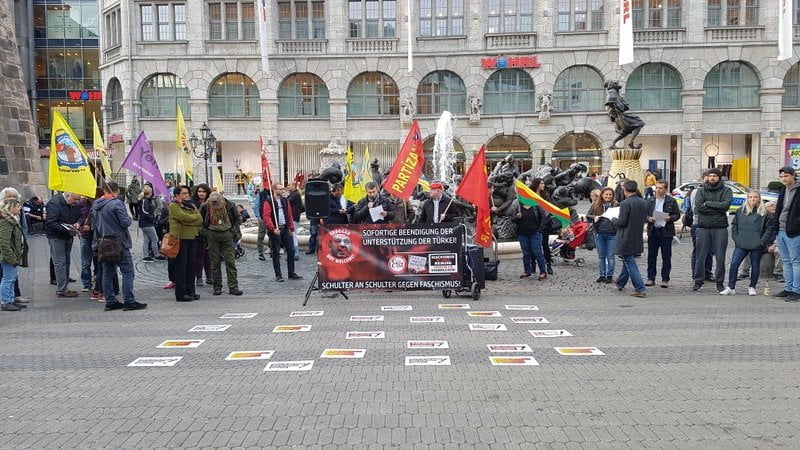 Kürdistan Barış İnisiyatifi’nin çağrıcı olduğu eyleme, Nürnberg’de faaliyette bulunan göçmen ve Alman ilerici, demokrat, devrimci örgütler flamalarıyla yer aldılar. Nürnberg Partizan taraftarlarının da yer aldığı eyleme 150 kişi katıldı.