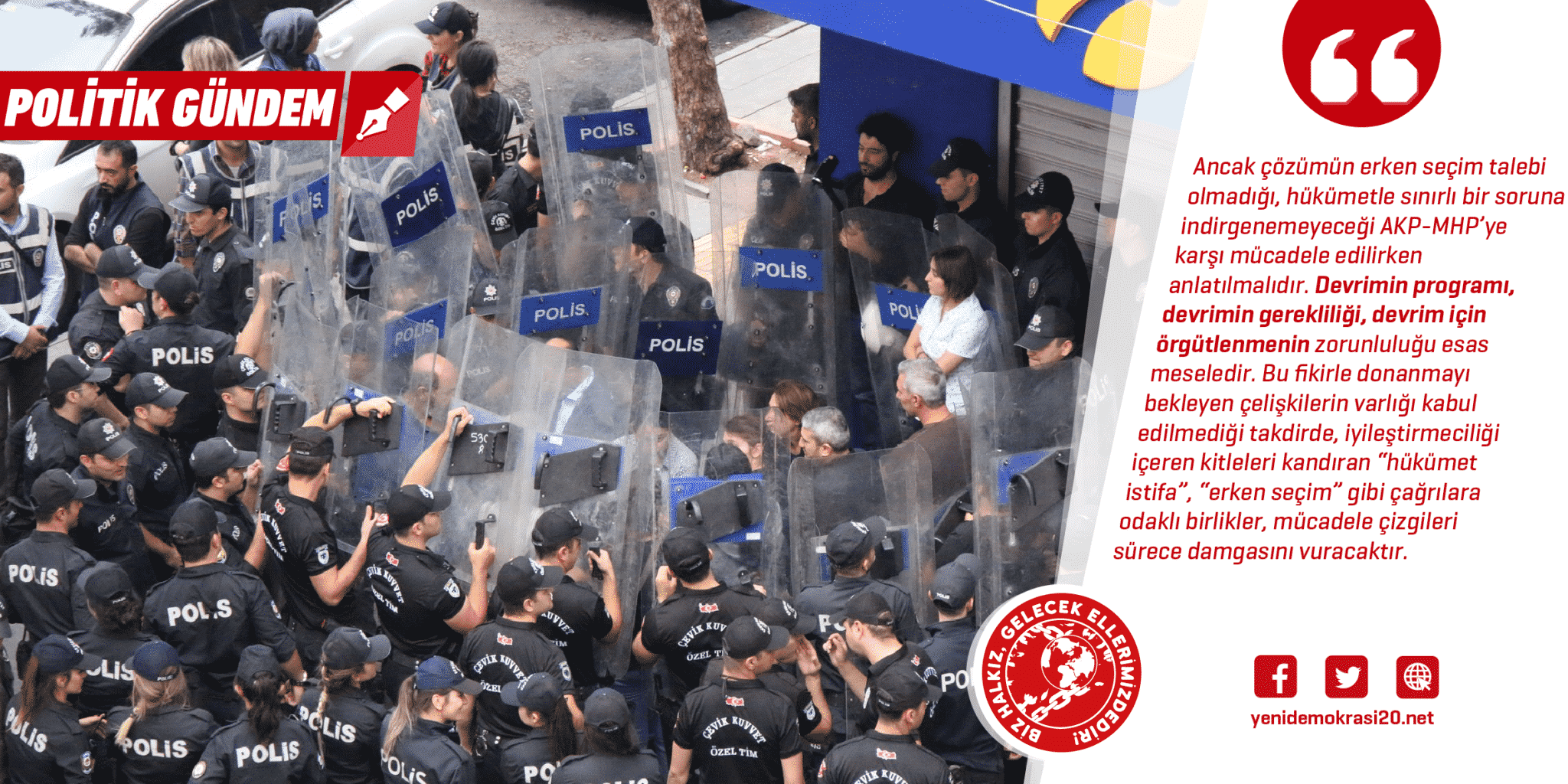 İşçi sınıfının ve ezilenlerin gündemlerinden sadece birisi erken seçim, ittifaklar ve güç değişiminin nasıl olacağına dairdir. İşsizlik, yoksulluk, artık oldukça sık aralıklarla gerçekleşen devalüasyonlar ve ona bağlı olarak zam kampanyaları, küçük esnafın iflası ve asgari yaşam koşullarının ortadan kalkması esaslı meselelerdir. İşçi sınıfı, emekçiler, Kürt ulusu temel hak ve özgürlüklerinden yoksun, ağır bir faşist saldırganlık altındadır. Örgütlenmelerine, hak arayışlarına ve ekonomik taleplerine yönelik faşist saldırılar asla azalmamakta sürekli artmaktadır. Bu durum kuşkusuz bir sistem krizidir. Faşist kliklerden birisinin iyi birisinin daha kötü yönetmesini aşan ölçüde bir sistem krizidir. Kitlelerin bu durumu tam anlamaya kavramaya ihtiyacı vardır. Tüm sorunlar, saldırılara karşı sokaklara çıkmak, örgütlenmek zorunludur. Son olarak “geçinemiyoruz” tepkisi ile sokaklara taşan eylemsellik, çıkış çok anlamlıdır. Ancak çözümün erken seçim talebi olmadığı, hükümetle sınırlı bir soruna indirgenemeyeceği AKP-MHP’ye karşı mücadele edilirken anlatılmalıdır. Devrimin programı, devrimin gerekliliği, devrim için örgütlenmenin zorunluluğu esas meseledir. Bu fikirle donanmayı bekleyen çelişkilerin varlığı kabul edilmediği takdirde, iyileştirmeciliği içeren kitleleri kandıran “hükümet istifa”, “erken seçim” gibi çağrılara odaklı birlikler, mücadele çizgileri sürece damgasını vuracaktır. Bu ise faşist kliklerin mücadelesine payanda olmayı getiren mücadele için yıkıcı bir tablo oluşturacaktır. Buna geçit vermemeliyiz.