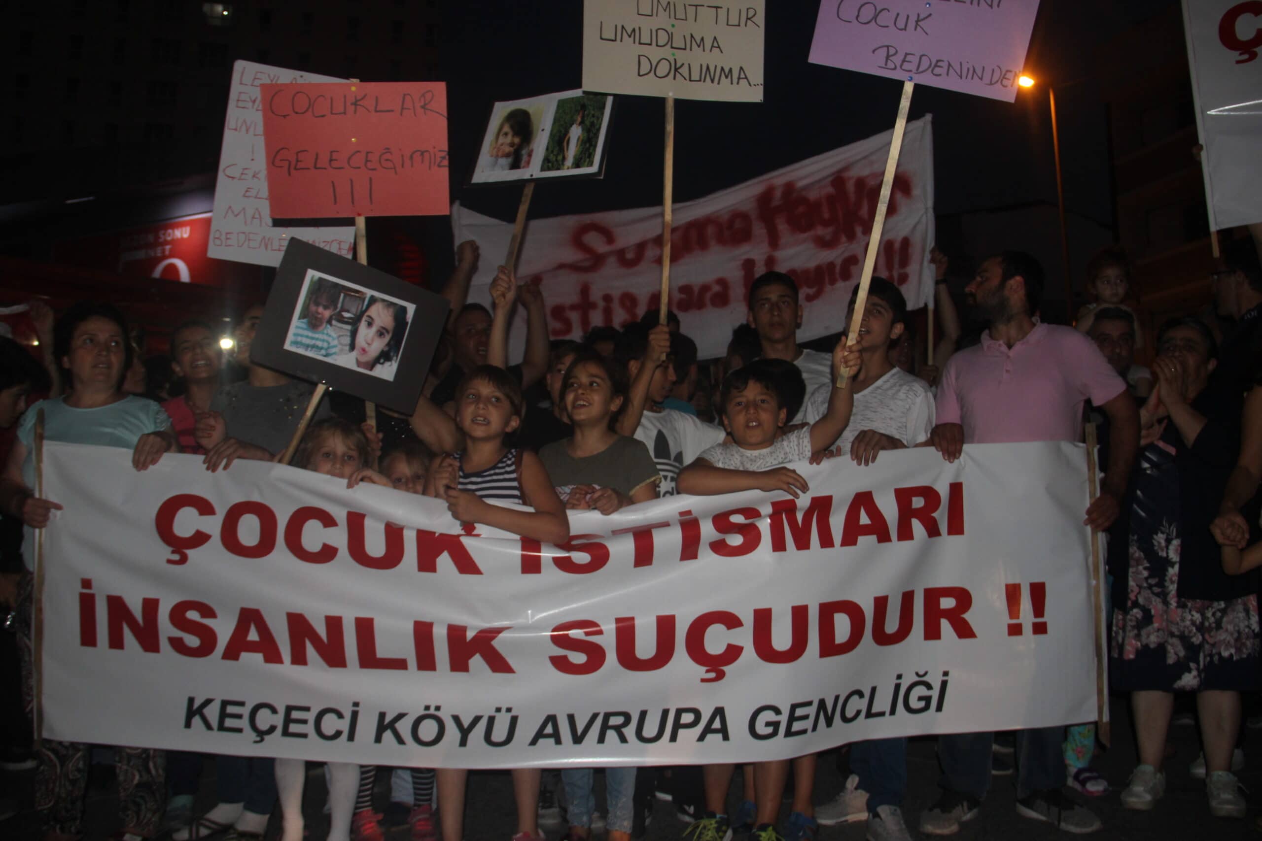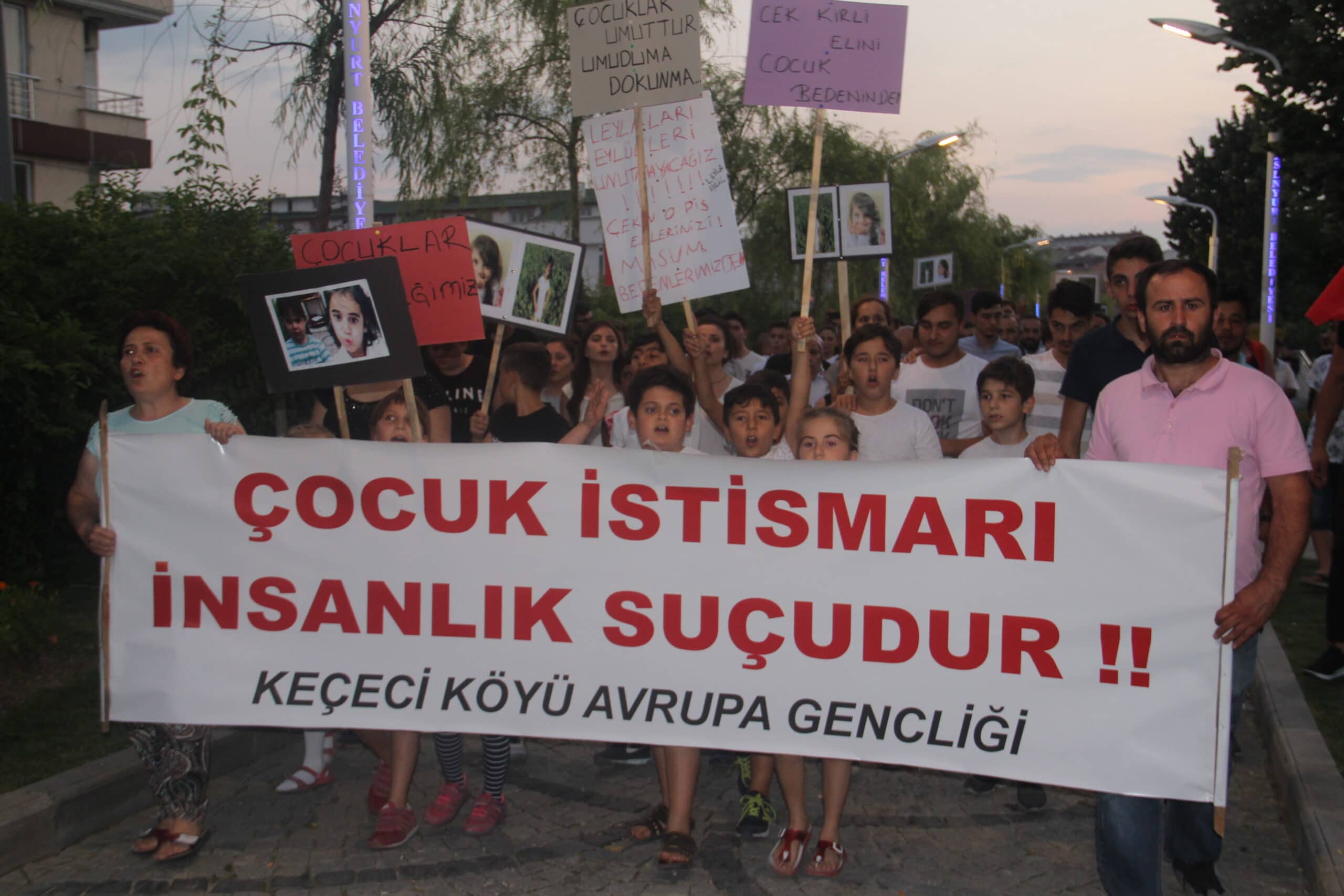 İSTANBUL- Esenyurt’a bağlı Kuruçeşme mahallesinde Tokat Erbaa Keçeci Köyü Derneği’nin çağrısıyla bir araya gelen yüzlerce kişi çocuk istismarına karşı yürüdü.