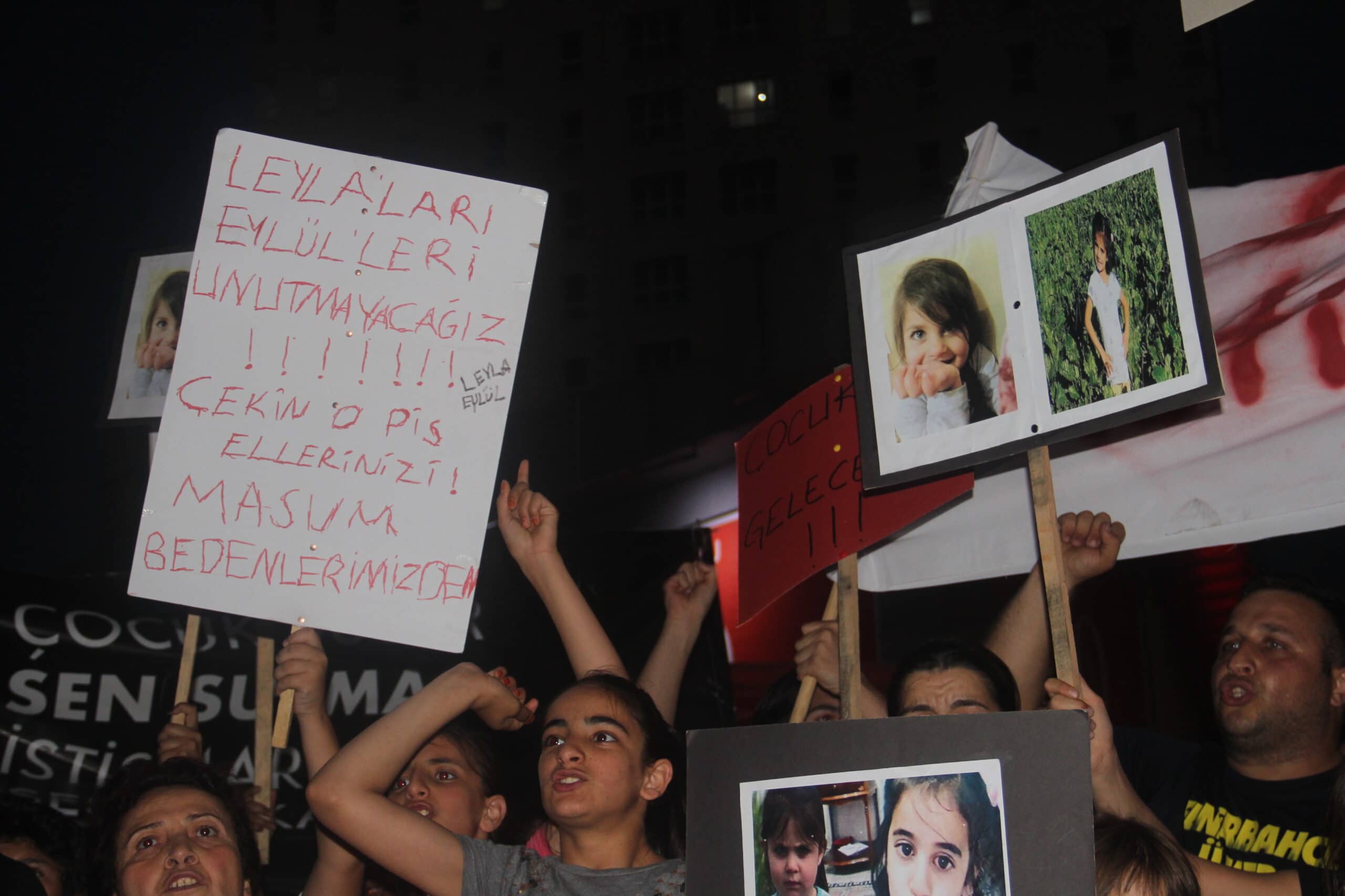 “Çocuk İstismarı İnsanlık Suçudur!” şiarlı pankart açılan yürüyüşe, polis OHAL gerekçesiyle izin verilmediğini söylese de binlerce kişi tüm tehditlere rağmen yürüyüşü gerçekleştirdi.