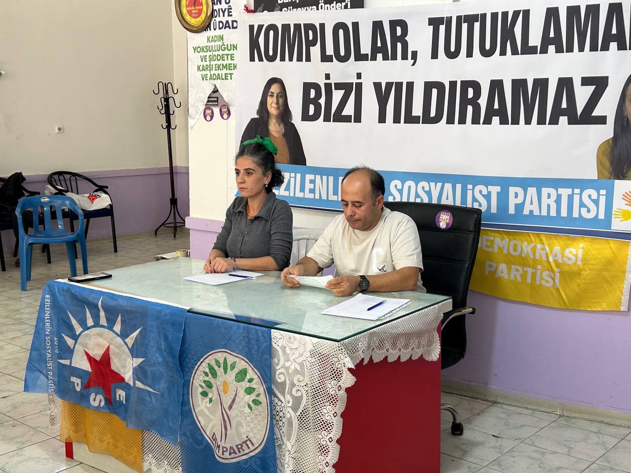 “Partimize ve devrimci sosyalist kadınlara yönelik bu saldırı şüphesiz nedensiz değildir. Çünkü Partimiz, emekçi halklarımızın, kapitalist sömürü düzeniyle derinleşen yoksulluğuna karşı sosyalizmin ve insanca bir yaşamın, gençliğin gasp edilen geleceğine karşı umudun, kadın katliamlarına karşı kadın iradesinin, adalet ve özgürlük mücadelesinin bayrağını daima en yükseklerde tutan, bir yıldan fazladır Türkiye ve Kürdistan’ın temel bir politik gündemi olan ‘Kürt sorununda çözüm’ tartışmalarında AKP-MHP iktidar bloğunun tasfiyeci hesaplarına ve oyalama politikalarına karşı emekçi çözümün sesi, adil onurlu bir demokratik barış talebinin öncülerinden biri oldu.