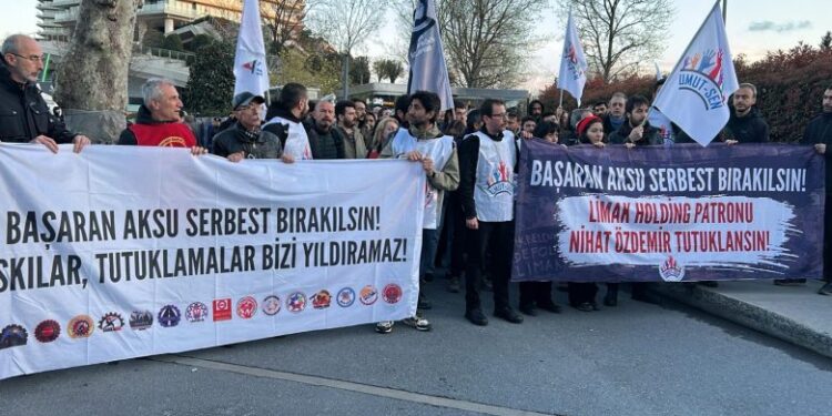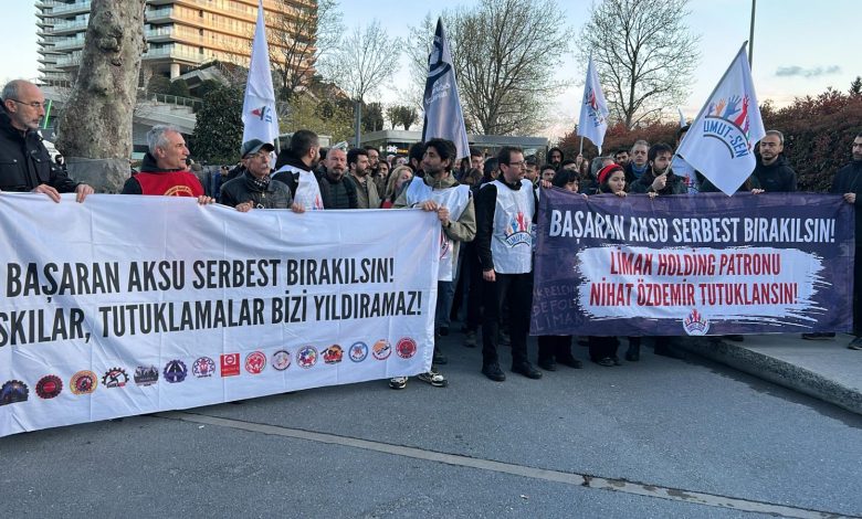 Dün (10 Nisan) İstanbul’da Limak Holding önünde Esra ışık ve Başaran Aksu’nun tutuklanması protesto edildi. Sendikaların ve demokratik kitle örgütlerinin katıldığı protesto’da “Başaran Aksu Serbest Bırakılsın”, “Esra Işık Serbest Bırakılsın”, “Limak Holding Patronu Nihat Özdemir Tutuklansın” yazılı pankartlar açılarak ve sloganlar atılarak serbest bırakılmaları talep edildi.
