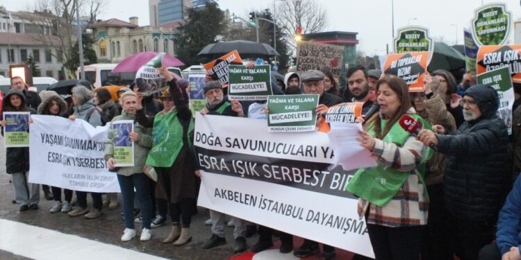 30 Mart gecesi evinden gözaltına alınarak ertesi gün tutuklanan Esra Işık için çevre örgütleri bir araya gelerek Işık’ın tutuklanmasını protesto etti.